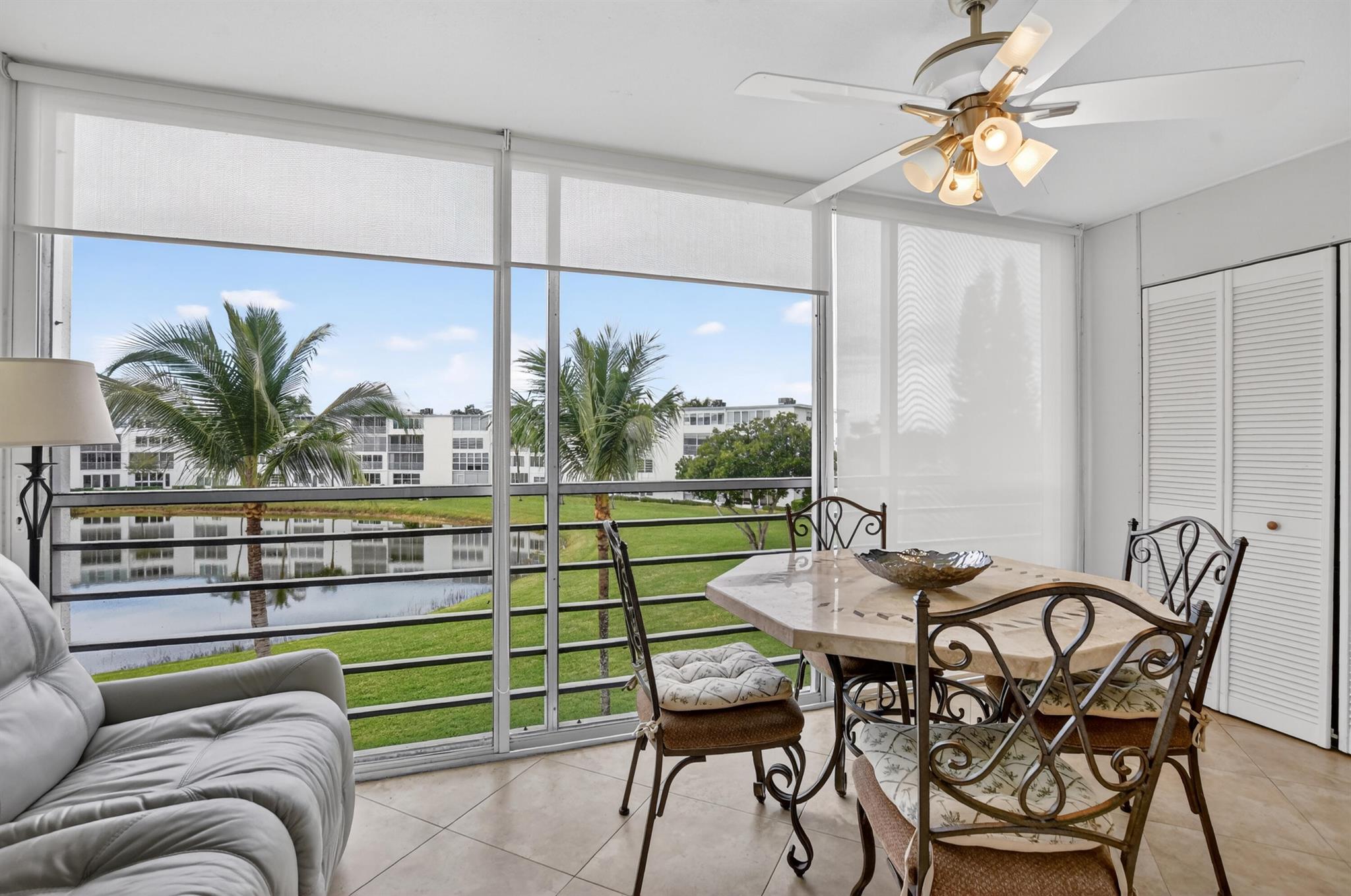 WAKE UP TO SUNSHINE ALMOST EVERYDAY! MOVE IN READY, Welcome to this , UPDATED, FULLY Modern and Comfortable FURNISHED condo in the desirable perfect location, Century Village Boca, YARMOUTH community. Designed for comfort and convenience, this residence offers modern finishes, beautiful water views, and easy access to exceptional amenities.Ceramic TILE floors in living room sunroom and one bedroom create a warm, cohesive flow.The renovated kitchen features white wood cabinetry. Comfortable modern furniture, in living room also provides extra sleeping space. 2 full bedrooms and bathrooms in this luxury size condo.A lanai with breathtaking water views provides the perfect retreat for