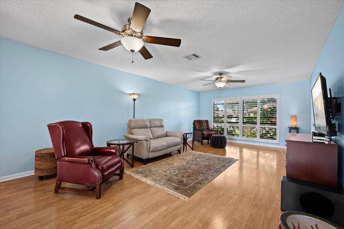Spacious & well-maintained home located in the Green Villas community of Boynton Beach. The floor plan offers comfortable living and dining areas with a functional layout for everyday living. The kitchen provides ample cabinet & counter space & opens to the main living areas. The enclosed Florida room features triple impact sliders, extending the living space & offering patio enjoyment year-round. Impact windows are installed in the front living room and primary bedroom, complemented by plantation shutters for light control and privacy, with accordion shutters throughout the remainder of the home. Bathrooms have been updated, including glass shower doors. The primary bedroom includes a walk-in closet and private ensuite bath. Green Villas is well maintained with resort style ammenities