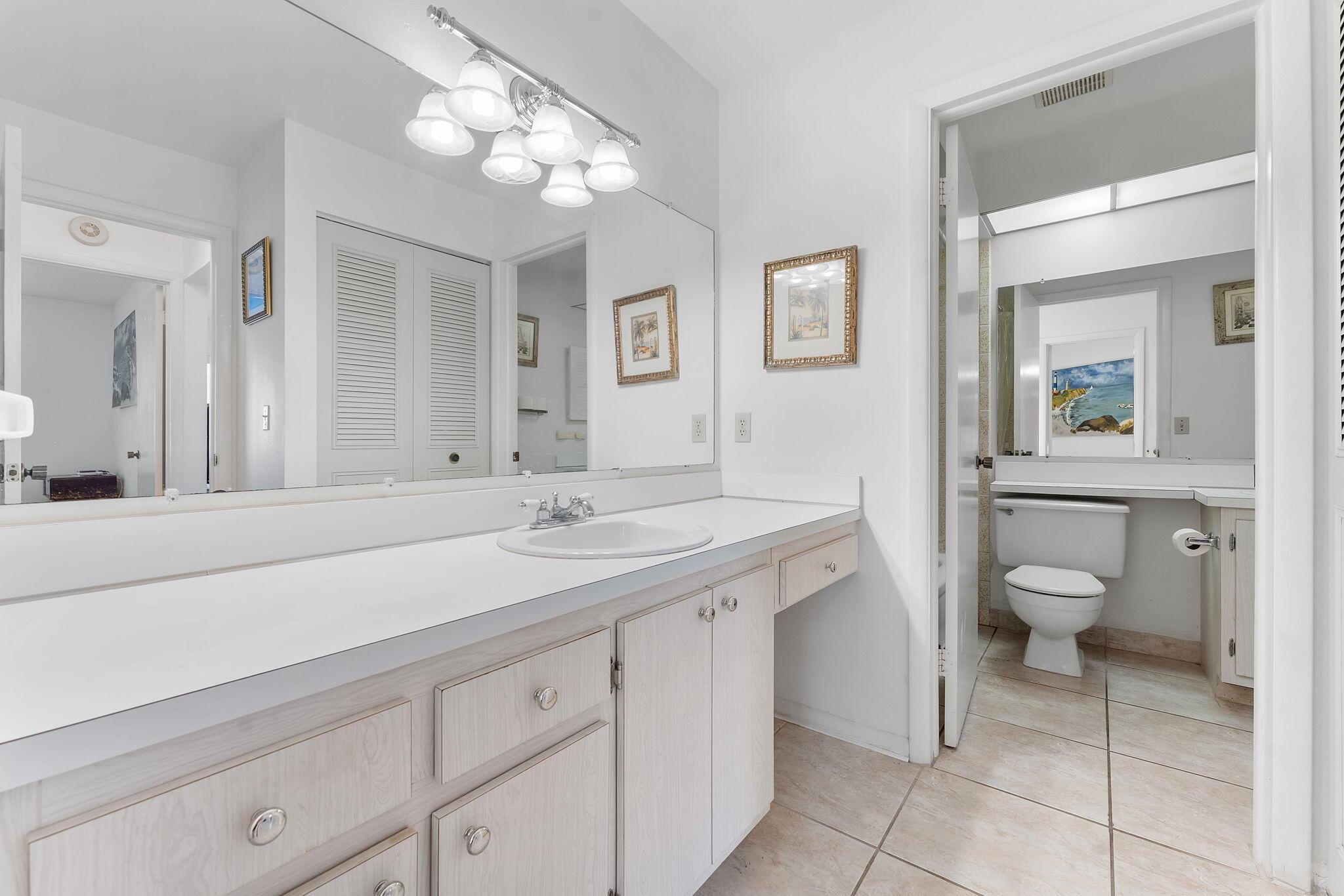 Welcome to this charming 2-bedroom, 2-bathroom villa offering a blend of comfort and potential. The open-concept living and dining area features cool tile flooring and abundant natural light, creating a welcoming space for entertaining. The kitchen is equipped with a modern stainless steel refrigerator, white cabinetry, and a convenient breakfast bar for casual dining.Retreat to the spacious primary suite, which boasts plush carpeting, a ceiling fan, and a private vanity area with ample lighting. A generously sized second bedroom provides flexibility for guests or a home office. Step out to the enclosed Florida room, a versatile tiled space perfect for relaxing year-round. With ample closet storage and a functional layout, this home is ready for your personal touch.