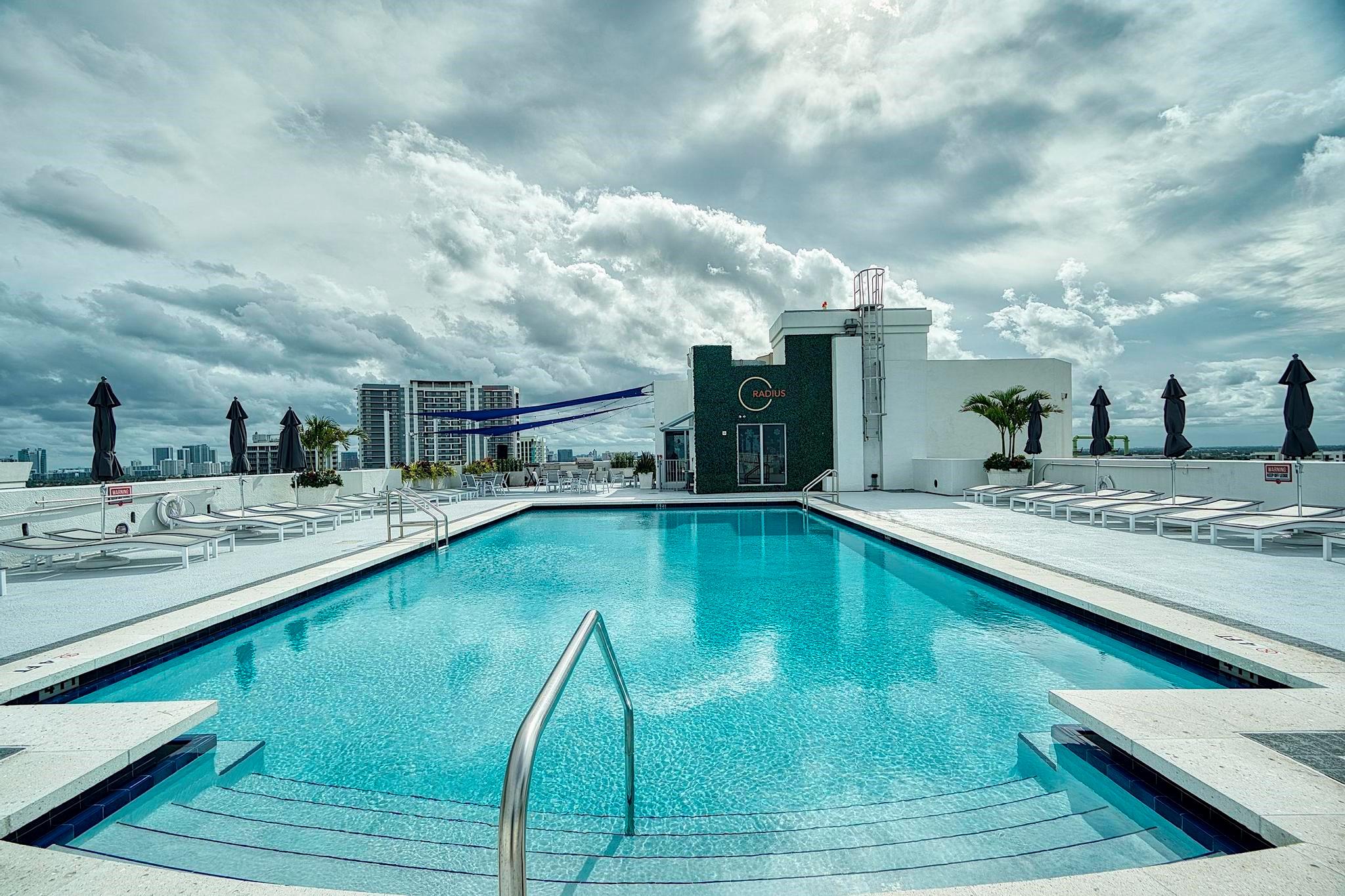 Stunning 2/2 penthouse in Downtown Hollywood’s Radius building. Top-floor unit with spectacular city, skyline, and ocean views. Fantastic location! An easy walk to Young Circle for live concerts, festivals, Friday Night Movies, ArtWalk, shops, restaurants, and entertainment. Bike or take the trolley to the beach and the Hollywood Boardwalk. The unit features 9.5 ft ceilings, porcelain tile, in unit Washer and Dryer, covered parking, and a soaking tub and separate shower in the primary bath. One of only seven units on the top floor, with direct access to the rooftop amenities from this level. The building offers security, gym, whirlpool, rooftop pool, screening room, storage, bike storage, and a doggy park! Showing by Appointment, Seller Occupied. Cash Only.