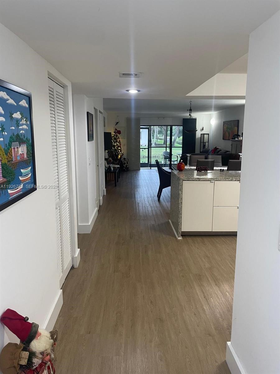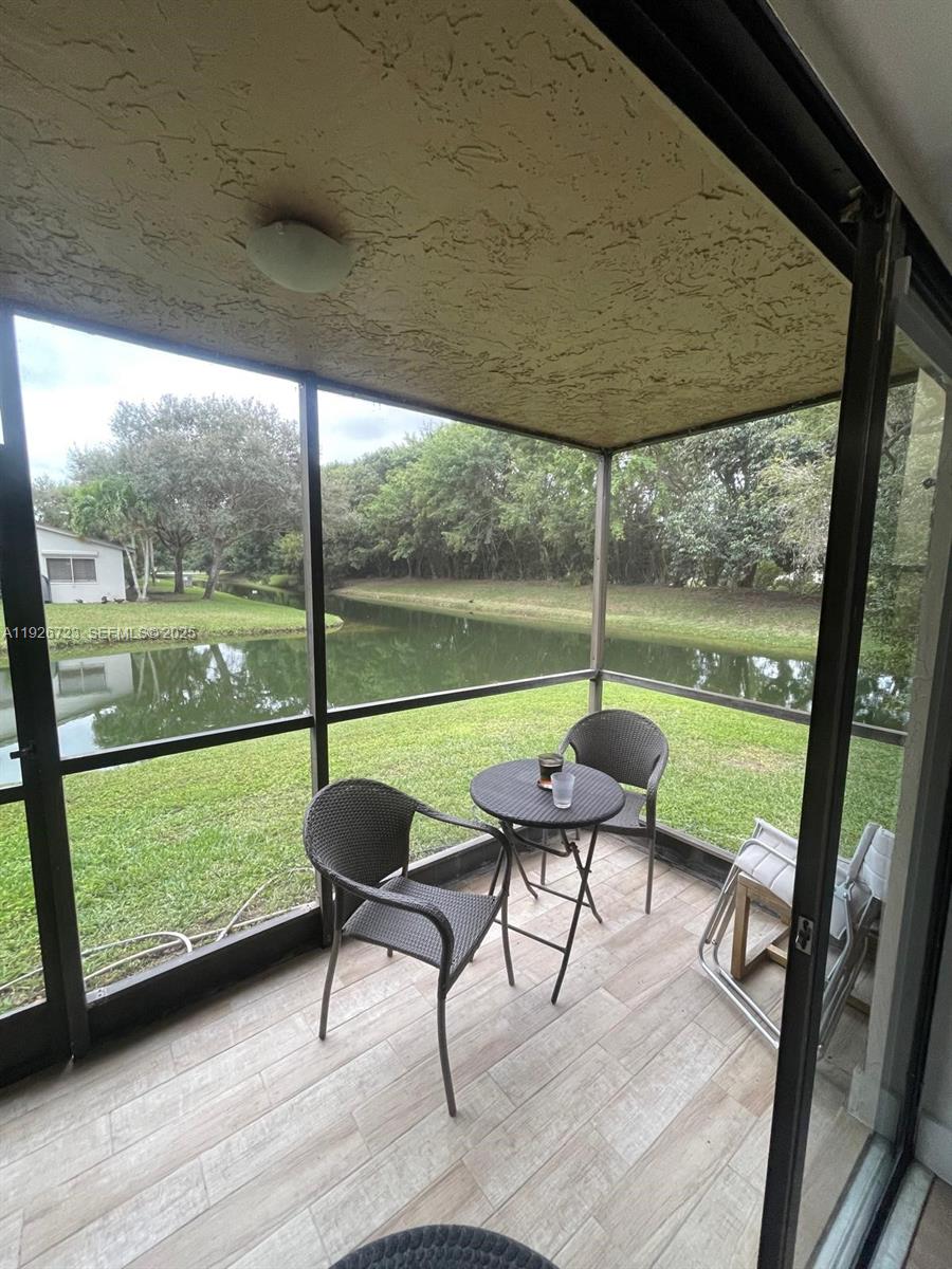 Come make this completely remodeled-ground-corner unit your home, overlooking the lake this apartment counts with an open floor plan, remodeled kitchen with modern Italian style cabinetry, Stainless steel appliances, granite counter-top and island that divides the living/dining room area and serves as breakfast nook. For being a corner unit, this apartment has an extra set of sliding doors, which gives your a semi-private garden and gives brightness to the room. Brand new A/C unit, Washer/Dryer combo, and continuous laminate flooring all throughout. Remodeled bathrooms with low-flow toilets. 2 Screened porches and one storage room. Shutters for all windows, A+ schools, Town Center Amenities includes Tennis, Gym, Bowling, Sauna and more.