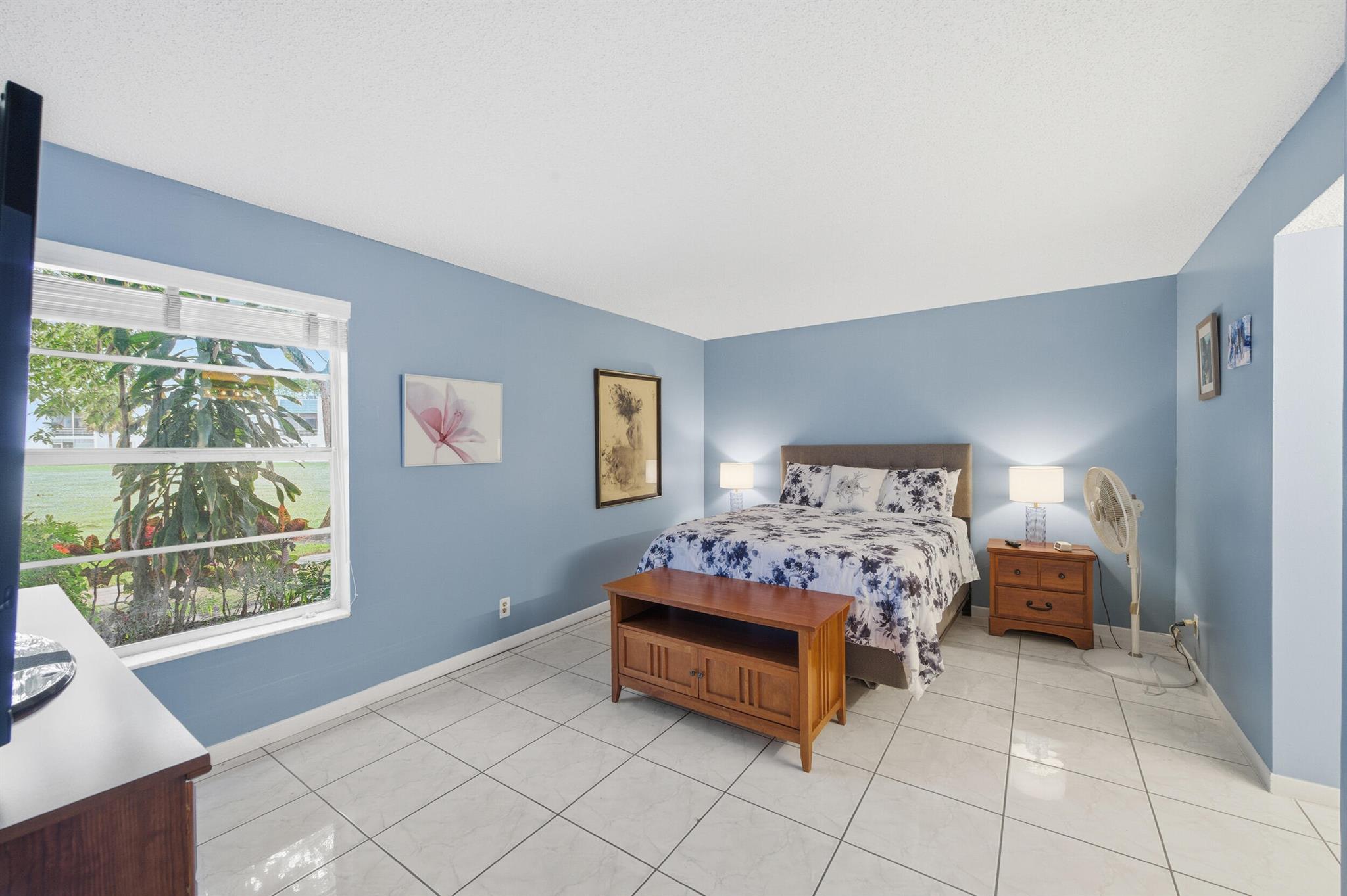 Welcome to this beautifully maintained end unit, first-floor condo offering stunning water and garden views in a prime Delray Beach location. This 2-story, 28-unit building has been freshly painted and power-washed, providing excellent curb appeal and peace of mind for the next owner. The condo is conveniently located right by the newly resurfaced pool, which will feature all-new furniture, as well as tennis courts and a gym. Inside, tile flooring flows throughout the main living areas, creating a clean, open feel that's both stylish and easy to maintain.The spacious layout includes a large primary bedroom with an en-suite bathroom and a generous walk-in closet, offering comfort and privacy. The updated guest bathroom features a beautifully tiled shower, glass shower door,