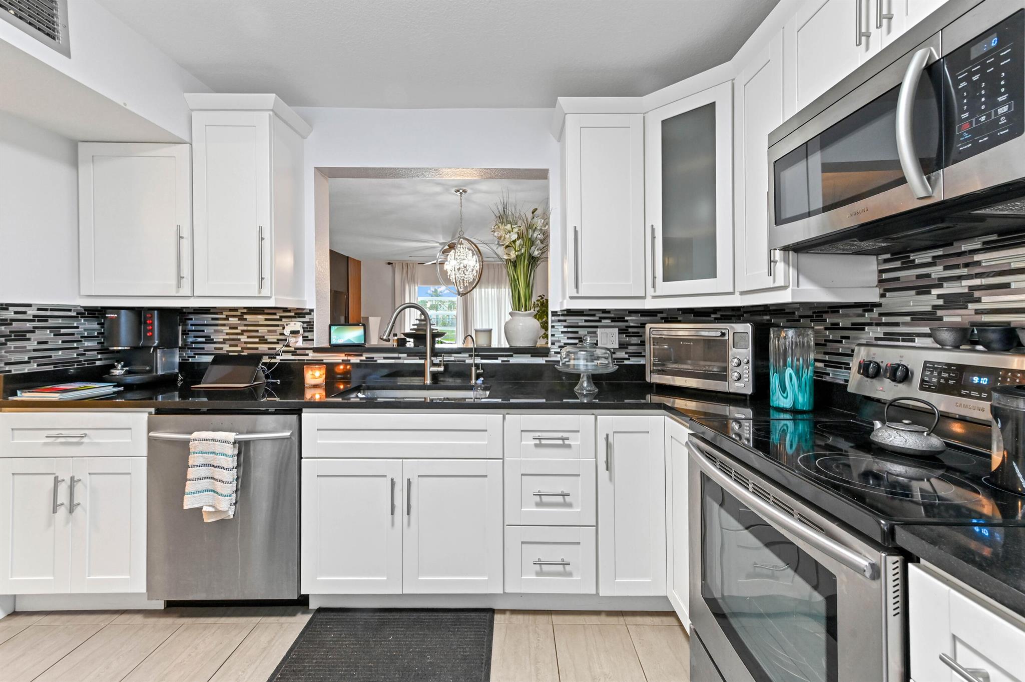 Pristine, fully remodeled 1/1.5 corner unit (793 sf) on the 1st floor, featuring unique, private open patio overlooking canal water views at the Topaz South. Just off of 441 & Commercial Blvd, located within minutes of shopping, dining, parks & major roads. New tile floors, light fixtures & drapes, modern vanities in both baths. Kitchen boasts quartz countertops, mosaic backsplash, updated cabinets & quality appliances. Living room opens to FL room/den, leading to private open patio. Bedroom has 2 closets (1 walk-in) & ensuite bath. Cable, water, garbage included in LOW monthly fee of $414. Unit comes with 1 parking space & guest spaces. Bldg has new roof! Amenities: pool, BBQ area, billiard, gym, tennis, clubhouse & more. Home is turn-key, expertly decorated, with furniture negotiable!