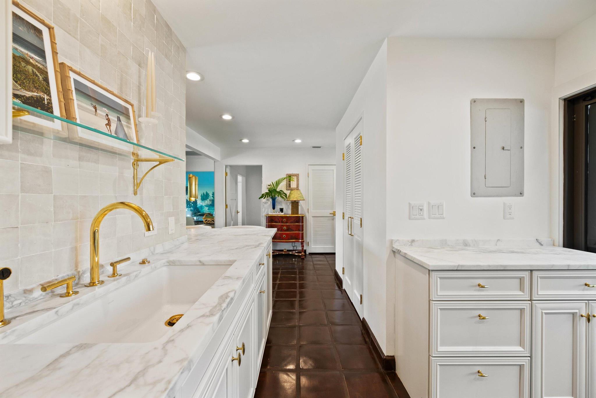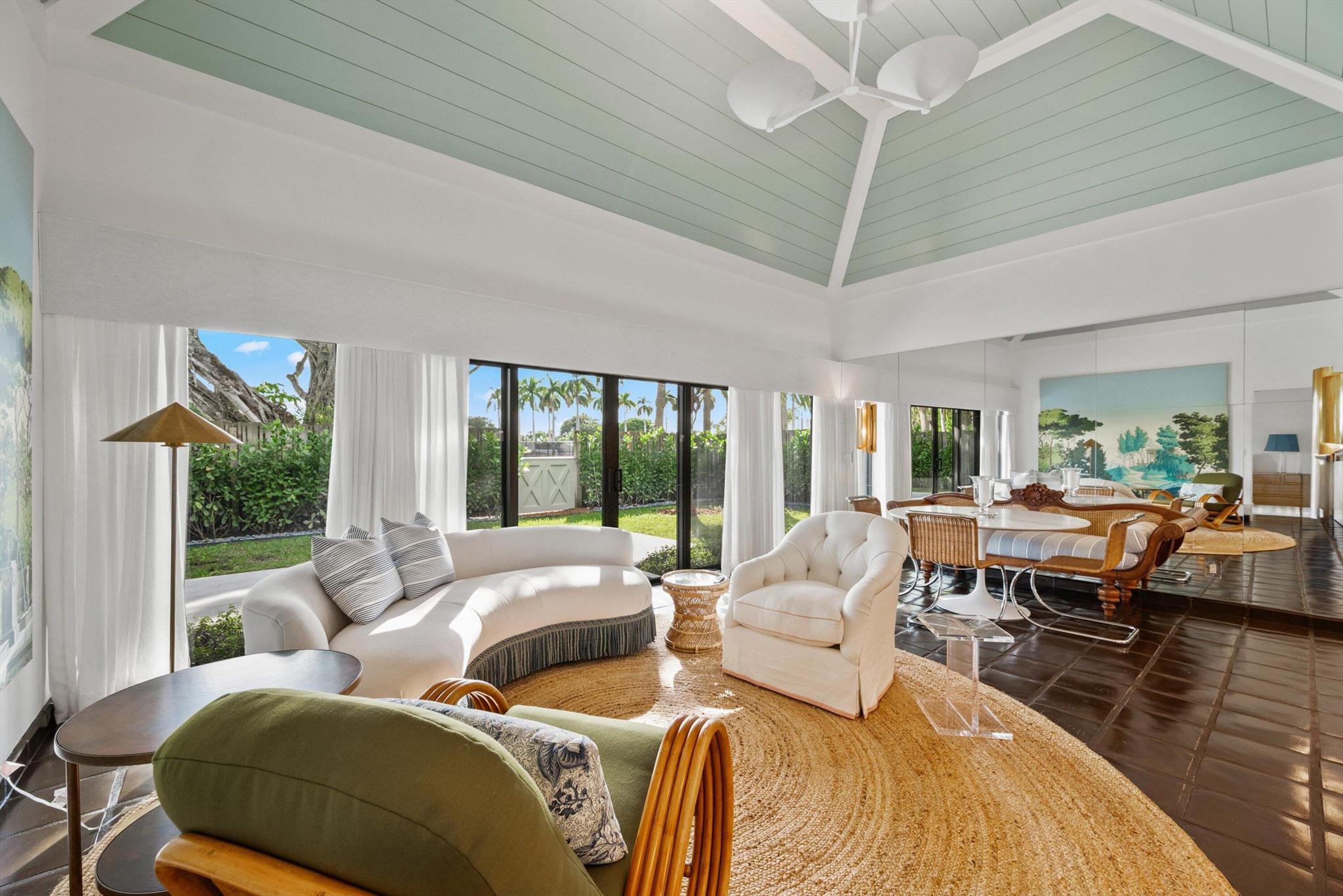 Expertly renovated and offered fully furnished, this light-filled two-bedroom, two-bath bungalow is perfectly situated in a prime Palm Beach Polo location. Designed for both function and style, the residence features two spacious primary suites, each with a well-appointed ensuite bath. Thoughtful details and high-quality finishes are showcased throughout, creating a fresh and sophisticated aesthetic.The updated kitchen features custom cabinetry and elevated detailing, flowing seamlessly into the main living areas. The inviting family room is filled with natural light and offers open living and dining spaces ideal for everyday living or entertaining. Custom built-ins include an under-counter refrigerator and ice maker, thoughtfully designed to enhance effortless entertaining.