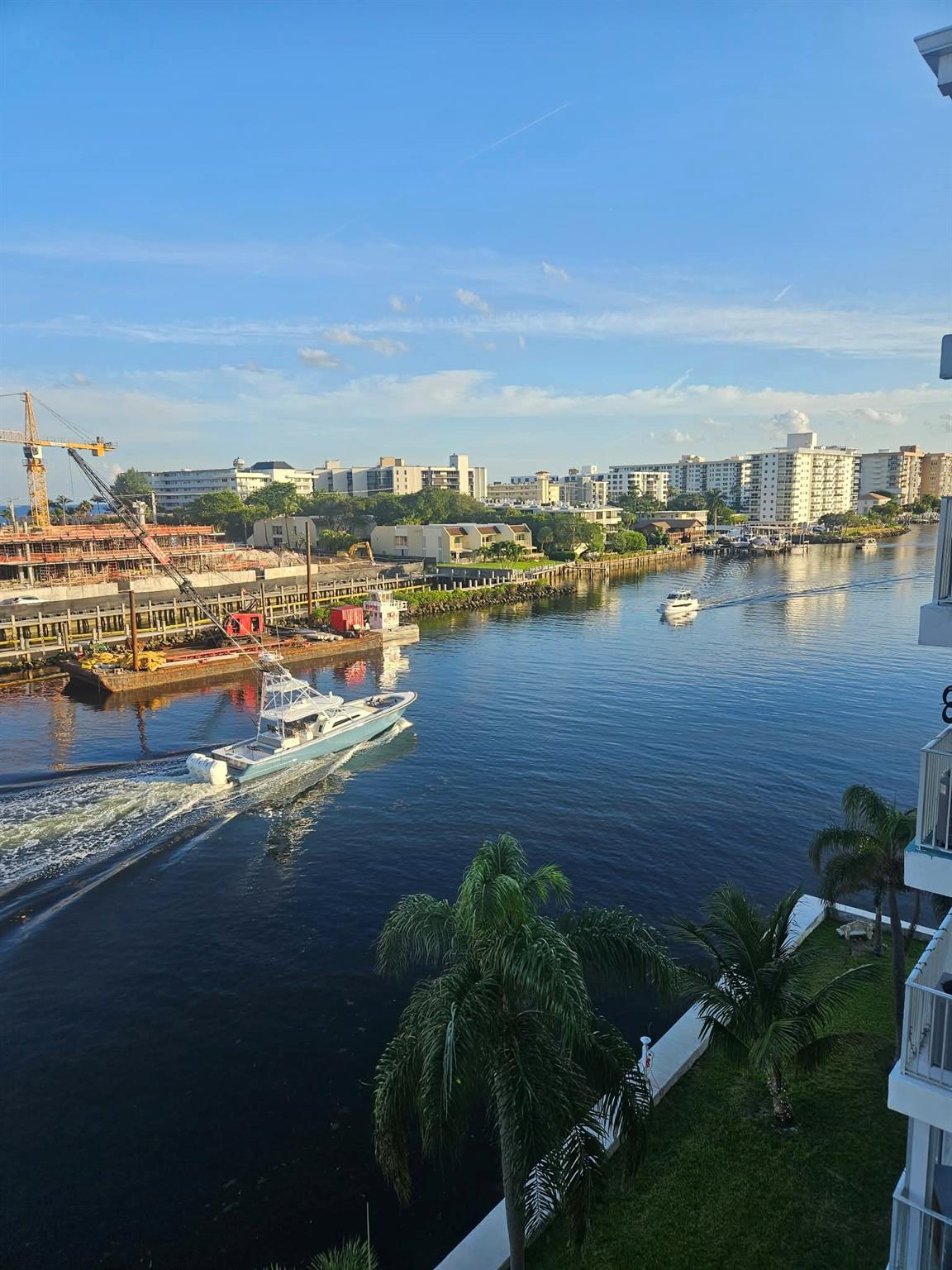 New England charm meets South Florida waterfront living in this renovated 6th-floor 1BR/1BA condo with sweeping Intracoastal and ocean views. Thoughtfully updated kitchen with granite countertops, upgraded cabinetry, stainless appliances, and modern lighting. Rich wood flooring, crown molding, impact windows, custom walk-in closet, and a spa-style bath with granite, wainscoting, and new tub/tile create a timeless, coastal-classic feel. The private balcony is perfect for morning coffee, sunsets, and holiday boat parades. Major building upgrades noted by seller: concrete restoration completed, new seawall, roof (2024), fresh paint, and upcoming impact exterior door/windows. Minutes to ocean, dining, and shops—ideal year-round or seasonal retreat. Calling listing agent for a tour.