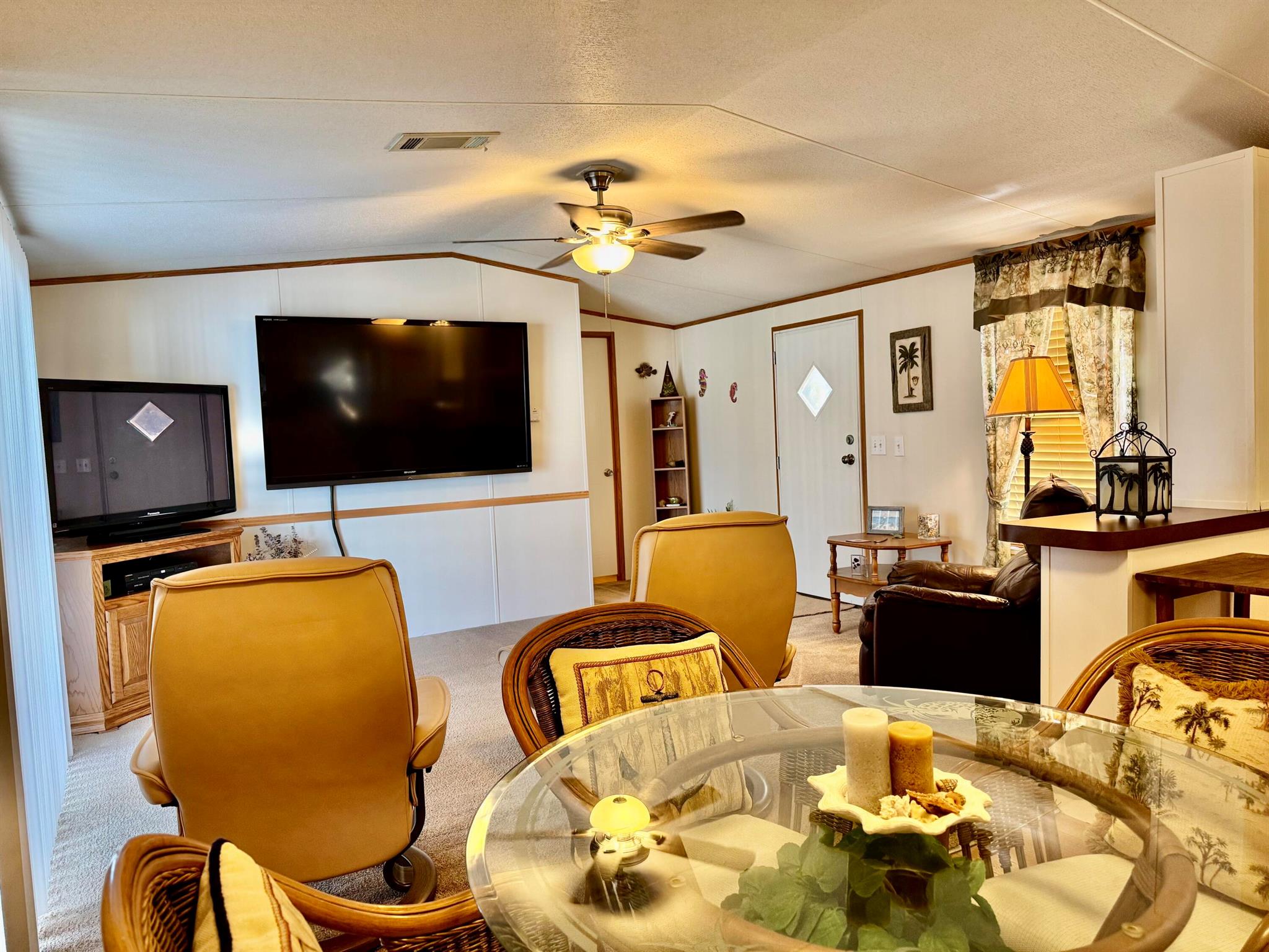 TAYLOR CREEK ISLES~ LAKE ''O'' Access. Delightful 2005 SWMH. 2 Bd/2 Ba, 12x29 screened back porch. Split floor plan. Bright and cheery and full of charm. Metal roof, Bimini Shutters. 10x16 and 11x11 storage sheds. Concrete seawall. Driveway is long enough for boats and cars - even a RV! Fully furnished and ready to be your FLORIDA GET-A-WAY! Dimensions are approximate, must measure for exact