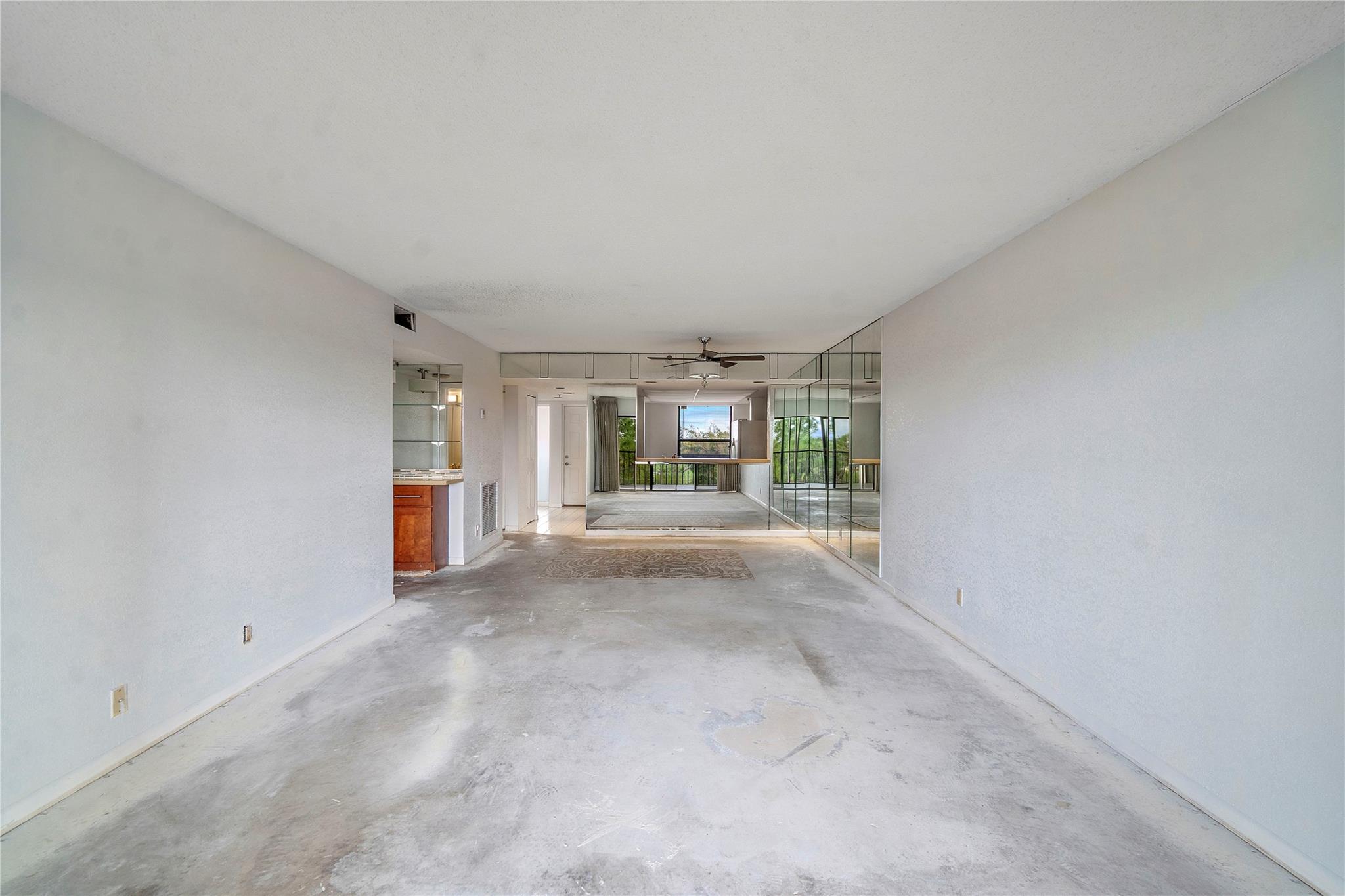 Priced to Make It Your Own! Freshly painted with a new front door. Kitchen cabinets and quartz countertops with full backsplash were renovated 5 years ago. Condo is partially prepped to renovate. Rare 7th-floor 2BD/2BA split plan in prime Central Boca with hook up to put a in-unit stackable washer/dryer. This top floor property with its' above-the-tree line location give unmatched vistas of the Jack Nicholas designed Via Mizner Golf and City Club (membership not required). Club Royale has completed its Milestone & Structural Integrity Reserve Studies. Covered parking, private storage, renovated lobbies, and a modern clubhouse with pool, hot tub & fitness room. Square footage is approximate