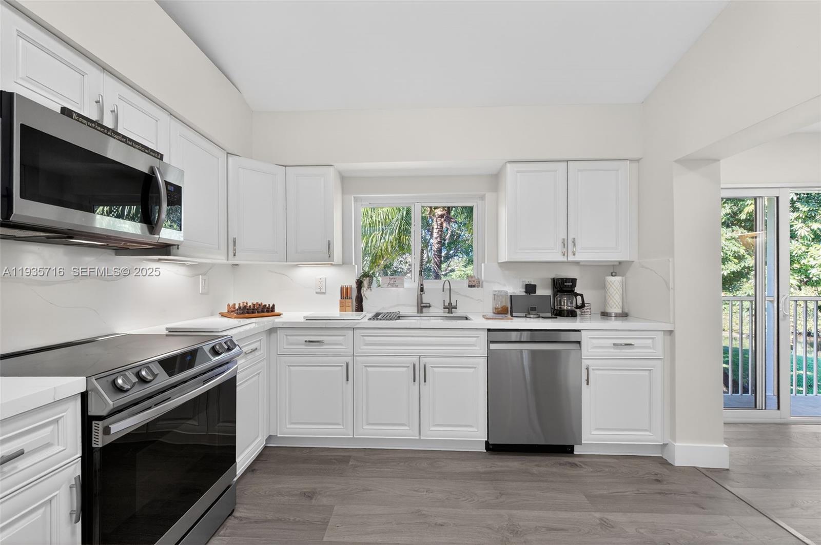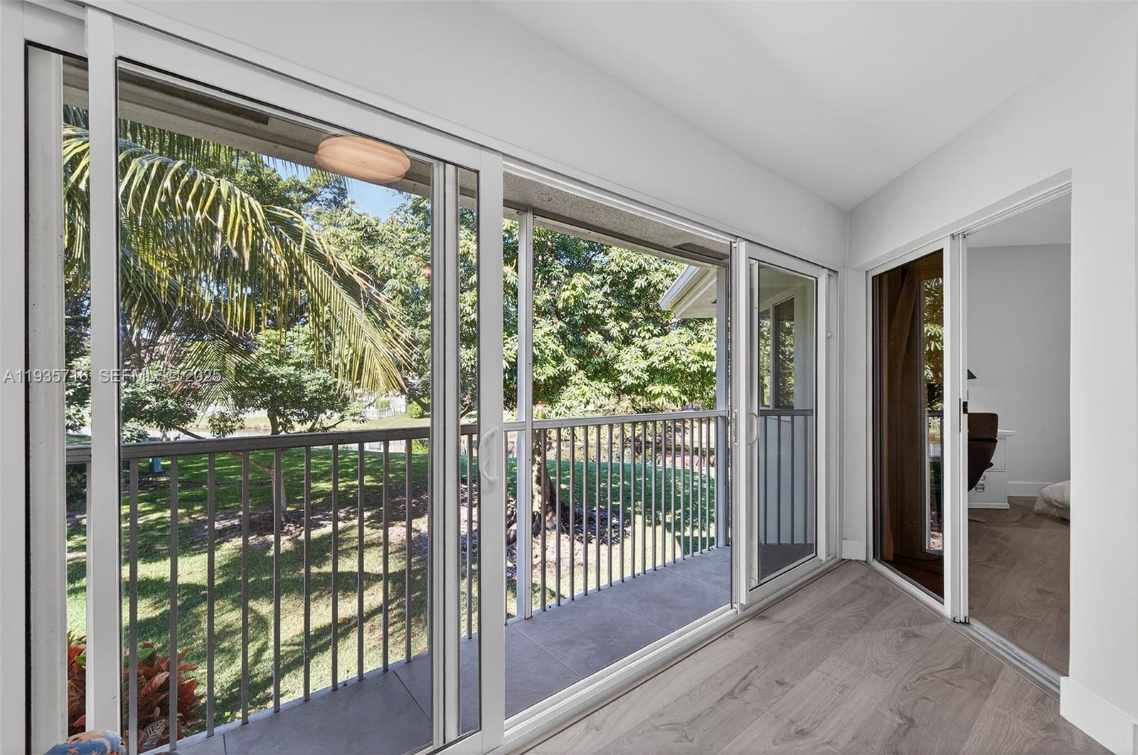 This beautifully renovated 3-bedroom, 2-bath residence offers a bright, well-designed layout with a seamless indoor-outdoor flow. The living and dining areas connect effortlessly to a private balcony, extending the living space and providing peaceful garden and canal views. Including the balcony, the home spans approximately 1,700 square feet, creating a comfortable sense of openness throughout. The kitchen is thoughtfully updated with new appliances, modern lighting, and a premium water filtration system featuring reverse osmosis and alkaline water. Swiss wood flooring runs throughout the interior, adding warmth, durability, and easy maintenance. Impact windows enhance energy efficiency and sound reduction, while updated PEX piping adds long-term reliability. All three bedrooms are generously sized and include walk-in closets, offering excellent storage. Both bathrooms have been fully renovated with sleek glass-enclosed showers and contemporary finishes. Two parking spaces are included, one in a secured garage. Ideally located in Plantation with easy access to shopping, dining, Central Park Recreation Center, golf courses, and major highways.