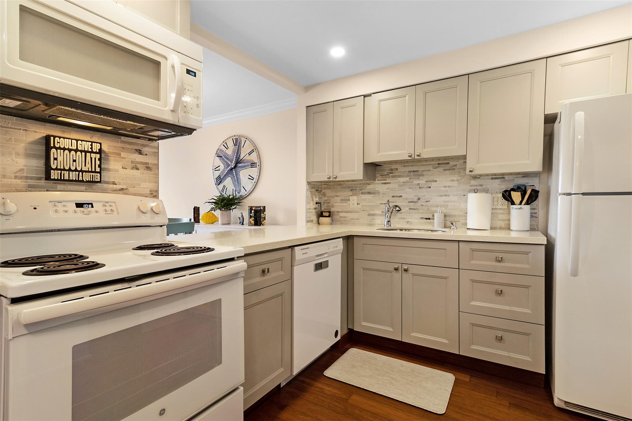 Bright & impeccably maintained 1-bed 1.5-bath featuring a beautifully updated kitchen open to main living area. Spacious living-dining combo boasts elegant wood flooring & crown molding. Large primary bedroom w/ chic barn doors, walk-in closet, office nook, updated bath & spa tub. Impact windows/doors overlooking daily sunsets from private balcony. New AC & tankless water heater. Maintenance includes premium cable TV, high-speed internet, & FREE laundry. Extra storage space & secure gated parking. Riverfront building, heated pool, sundeck, stunning lobby renovation, modernized elevators, & sleek community room update. 40 year inspection complete, reserves/strong financials. Walkable to Wilton Manors, minutes to Downtown Fort Lauderdale, I-95, & the beach.