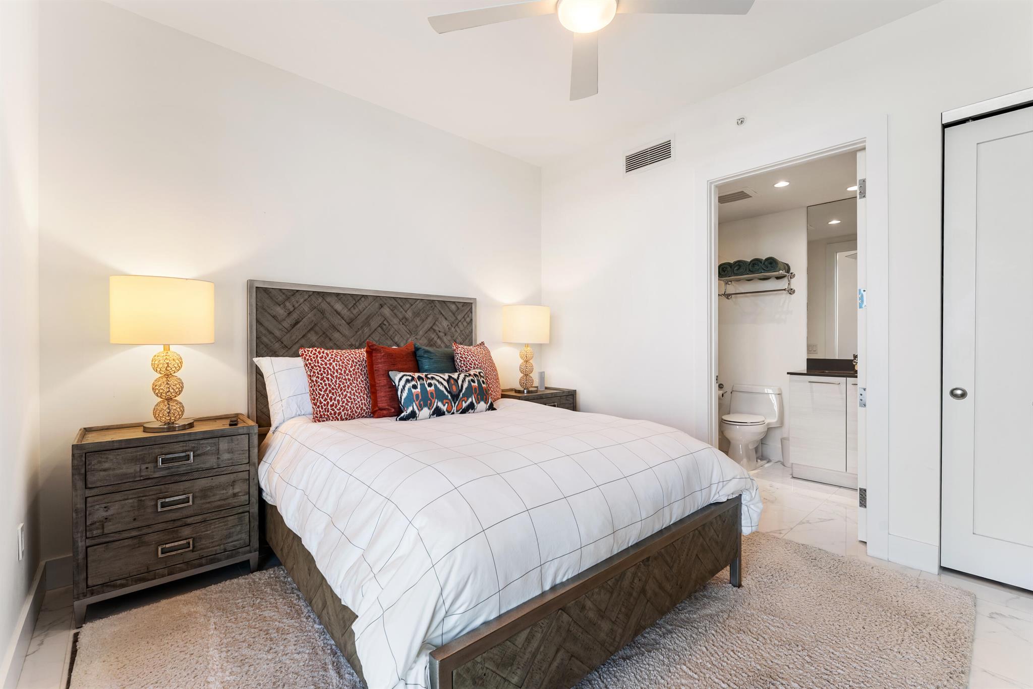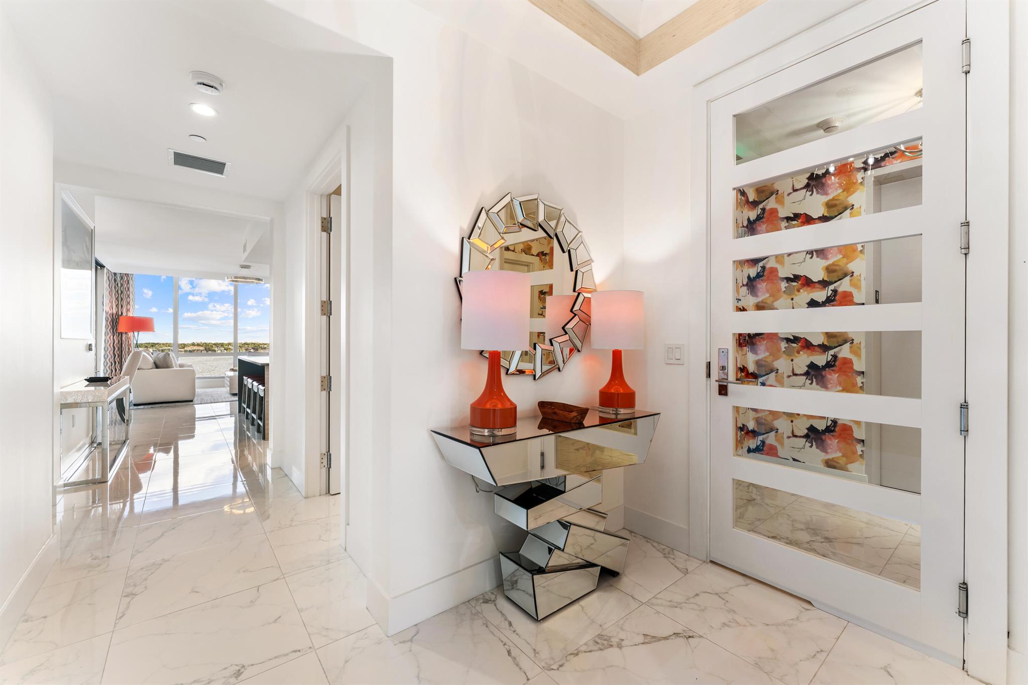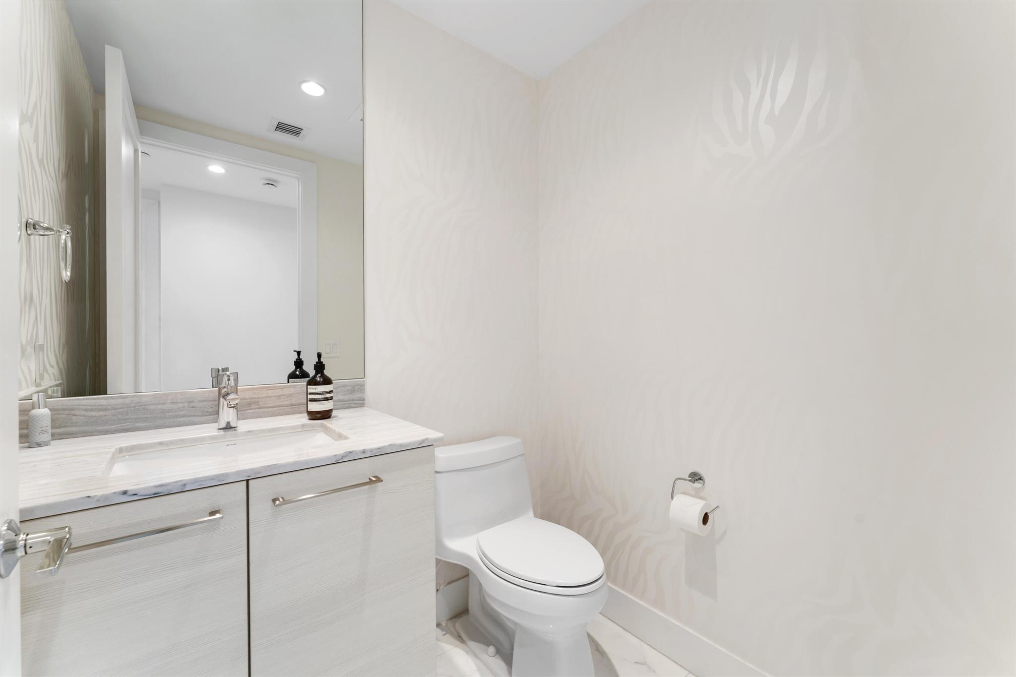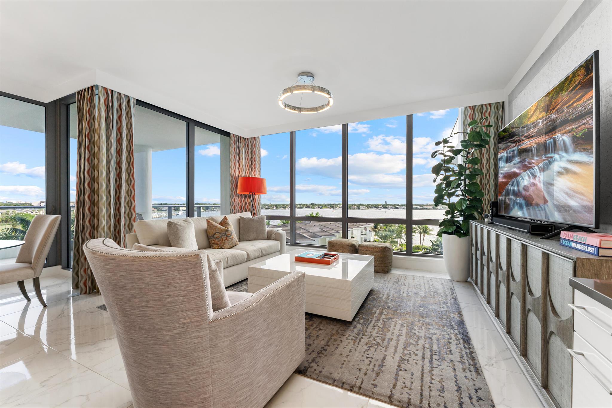 FULLY FURNISHED designer residence at Water Club with breathtaking panoramic water views. Floor-to-ceiling glass fills the home with natural light, while a private elevator entry provides comfort and privacy. Offering 2 bedrooms, 2.5 baths and a designated office/den, this is an ideal turnkey, lock-and-leave residence. Two private balconies - one east for water and sunrise views, one west for sunset skies. One of Palm Beach County's most prestigious waterfront communities, amenities include 24/7 concierge and manned gate, private marina with resident day dock, three pools, two hot tubs, two fitness centers, locker rooms with steam and sauna, beach cabanas, club room, pickleball court, dog park, and resident hotel suites. Pet friendly - up to three pets and no size restrictions.