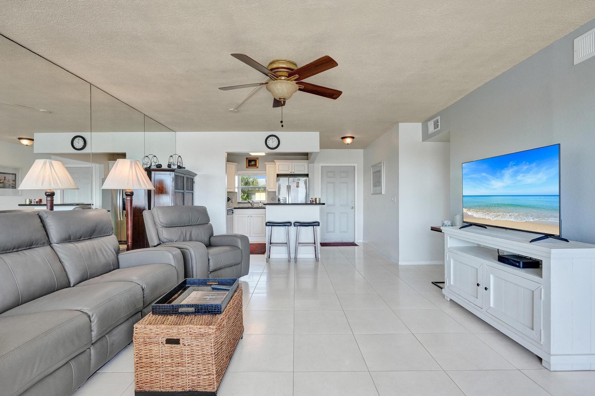 Live the Tropical Florida Lifestyle in this beautifully situated 2-bedroom, 2-bath condo offering water views from both the living area and bedrooms. Wake up to tranquil scenery and enjoy the coastal breeze from your private retreat. The open-concept kitchen flows seamlessly into the living and dining spaces, creating an inviting layout perfect for entertaining or relaxing after a day by the water. Both bedrooms are generously sized and positioned to capture serene water views, providing a true resort-style living experience. Located just steps from the iconic Key Lime House, Ravish Restaurant, the beach, and the fishing pier, this condo places you at the center of Lantana's vibrant waterfront lifestyle. Whether you're enjoying sunset cocktails, waterfront dining, or morning walks
