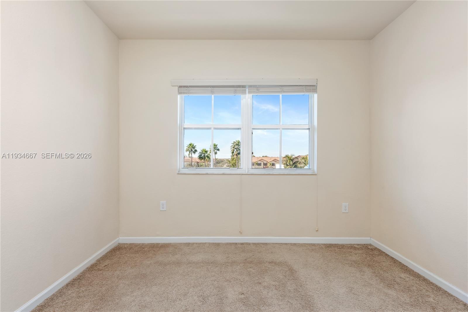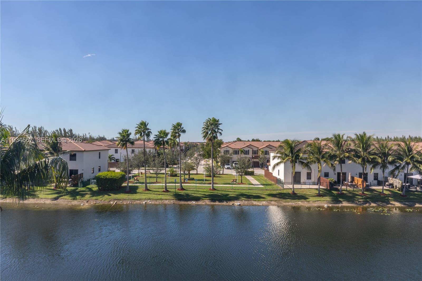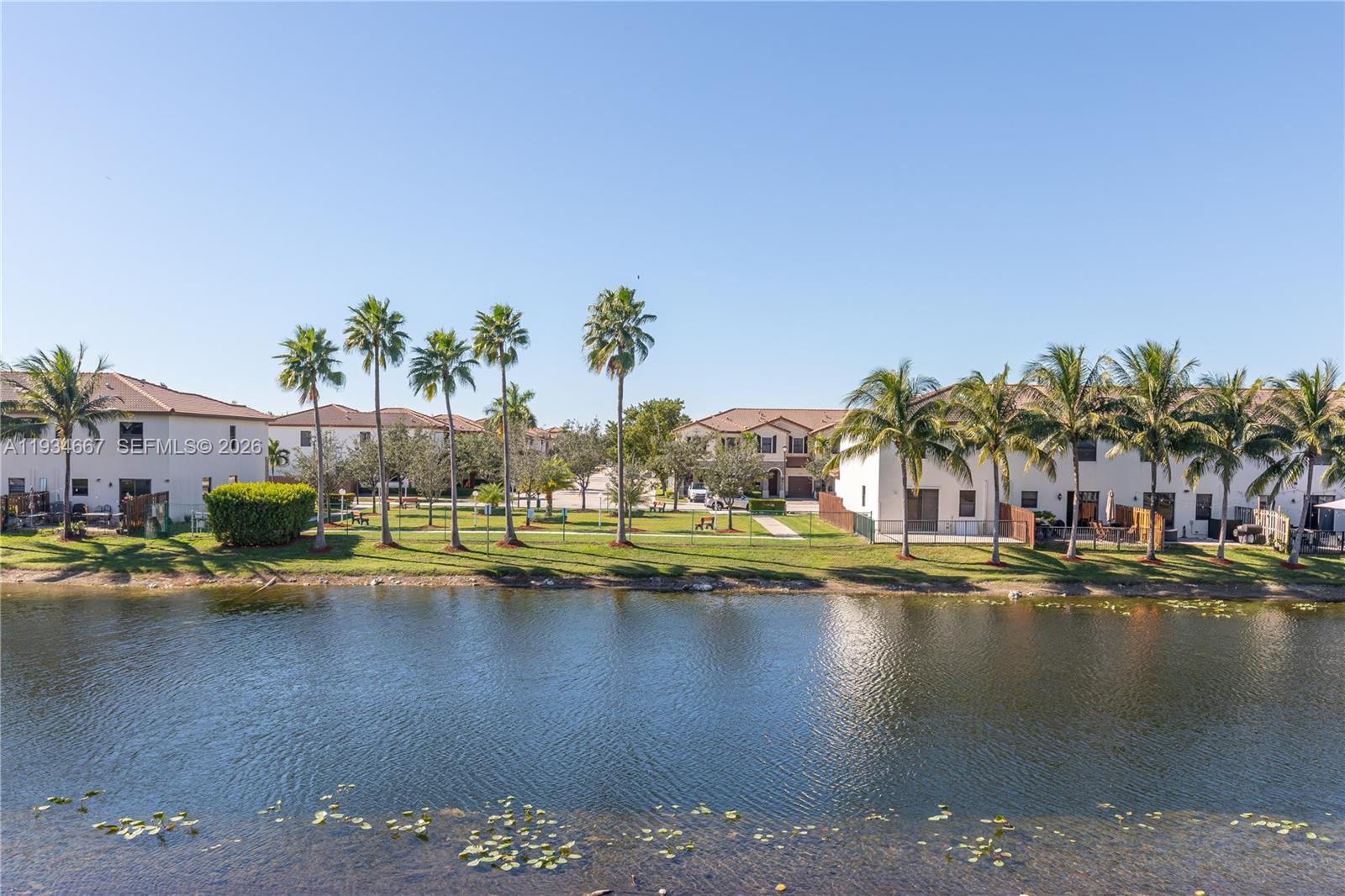 Beautiful 2-story apartment featuring an open-concept kitchen, dining and living area and a guest bathroom on the first floor, lake view and private balcony; 2 bedrooms both en-suite bathrooms upstairs; laminate floors in rooms and stairs; stainless steel appliances, granite counter top, wood cabinetry and full-size washer and dryer in unit. Located in a gated community with 24/7 security, resort-style amenities, such as pool with water park, game room, tennis, football and basketball courts, gym and sauna. Conveniently situated near international airports,Turnpike and Palmeto highways.