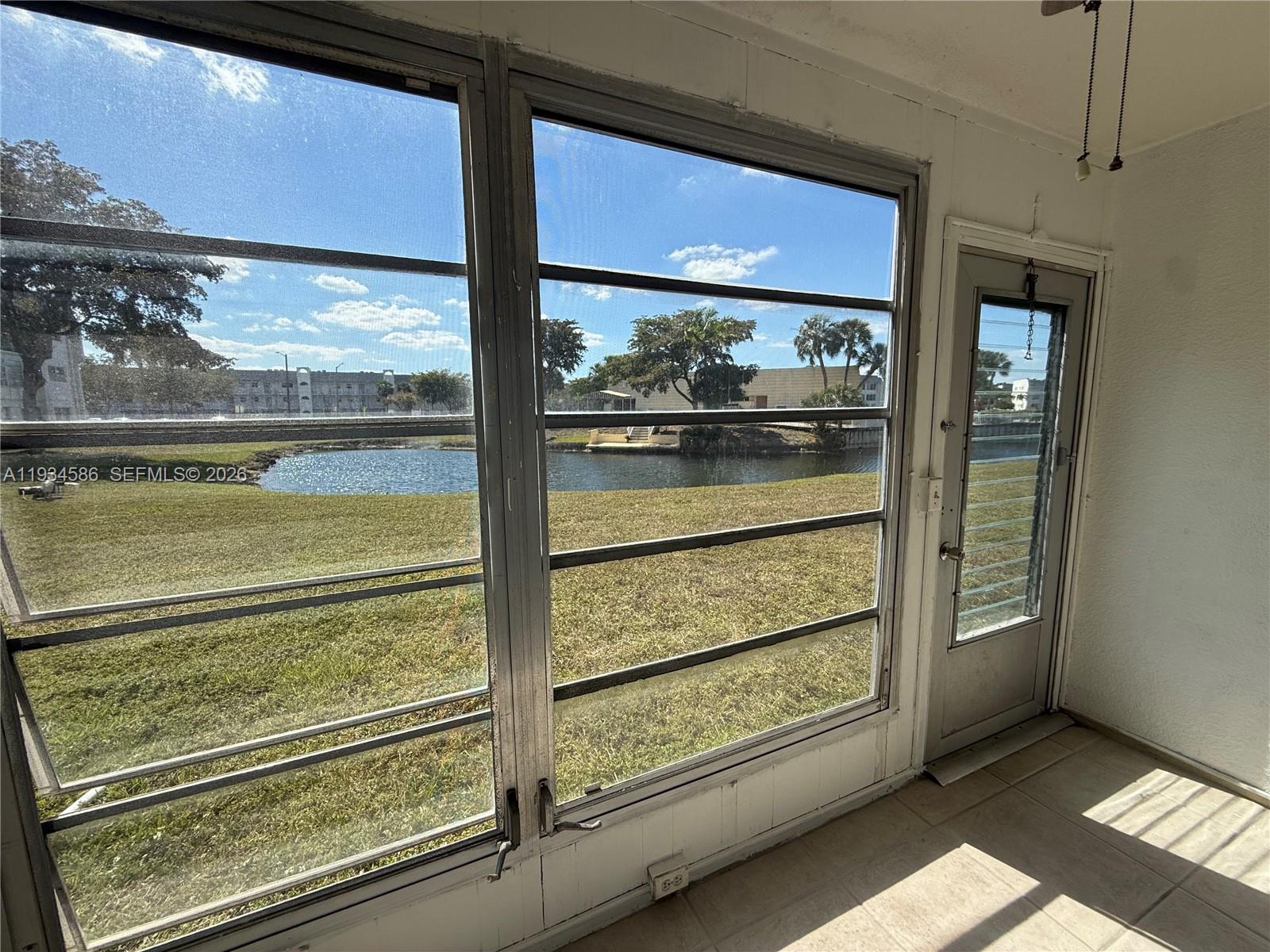 2 BED/2 BATH condo located on the first floor of this building in Sunrise Lakes. Florida room and living area overlooks the peaceful WATER views and is overlooking the clubhouse/pool area. Kitchen is equipped with dishwasher and assigned parking spot is right in front of the unit.