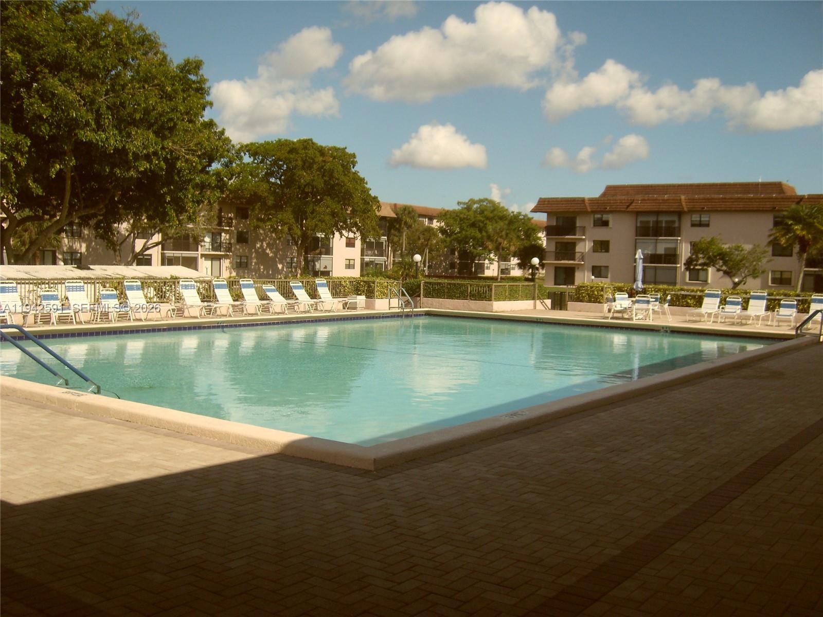 Spacious 2-bedroom, 2-bathroom third-floor CORNER UNIT offering serene lake and pool views—one of the best locations in the building. This well-maintained condo features over 1,250 square feet of living space filled with abundant natural light. Enjoy a dedicated laundry room equipped with a full-size washer and dryer, plus an additional storage closet. The eat-in kitchen is appointed with maple-tone cabinetry, granite countertops, and a matching backsplash. The open dining and living room combination showcases Brazilian wood laminate flooring, ideal for entertaining. Both bedrooms are generously sized and include walk-in closets. Relax year-round in the enclosed Florida room/patio—perfect for morning coffee or evening wine. Schedule your showing today.
