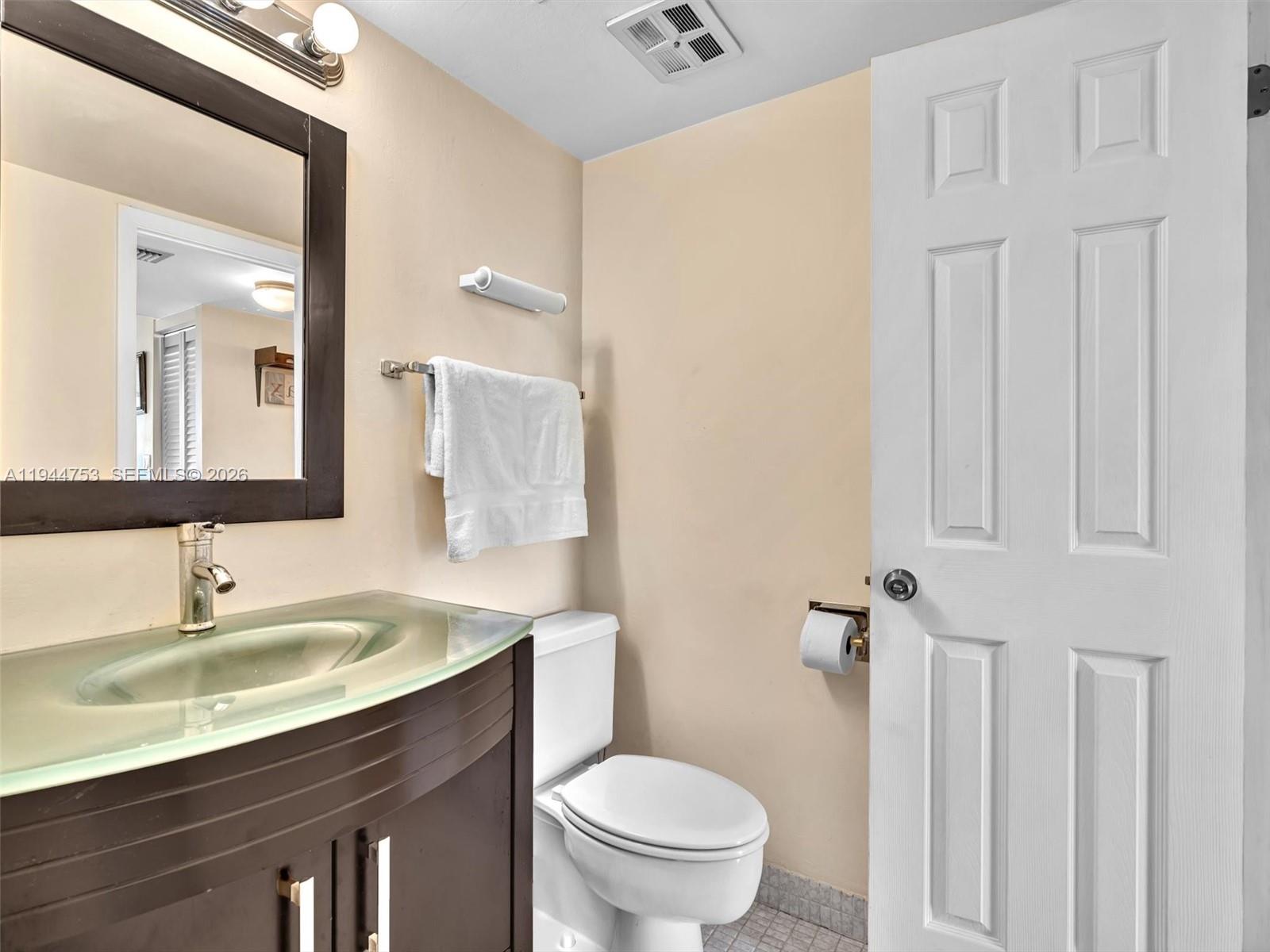 A GREAT OPPORTUNITY! Come enjoy this charming, bright top floor unit offering panoramic views upon entry. Large living room and dining areas for your enjoyment. A very spacious ensuite primary bedroom plus spacious closets. Upgraded AC installed in 2020. Come find your happy place! The building amenities include - cable and internet, heated pool, BBQ. The club room includes, a cozy gym, library and billiards. Ideally located on Country Club Drive. Stroll to the local markets, restaurants and Aventura Mall. Five minutes to the glorious beaches. Across from the popular Don Soffer Trail and golf course.