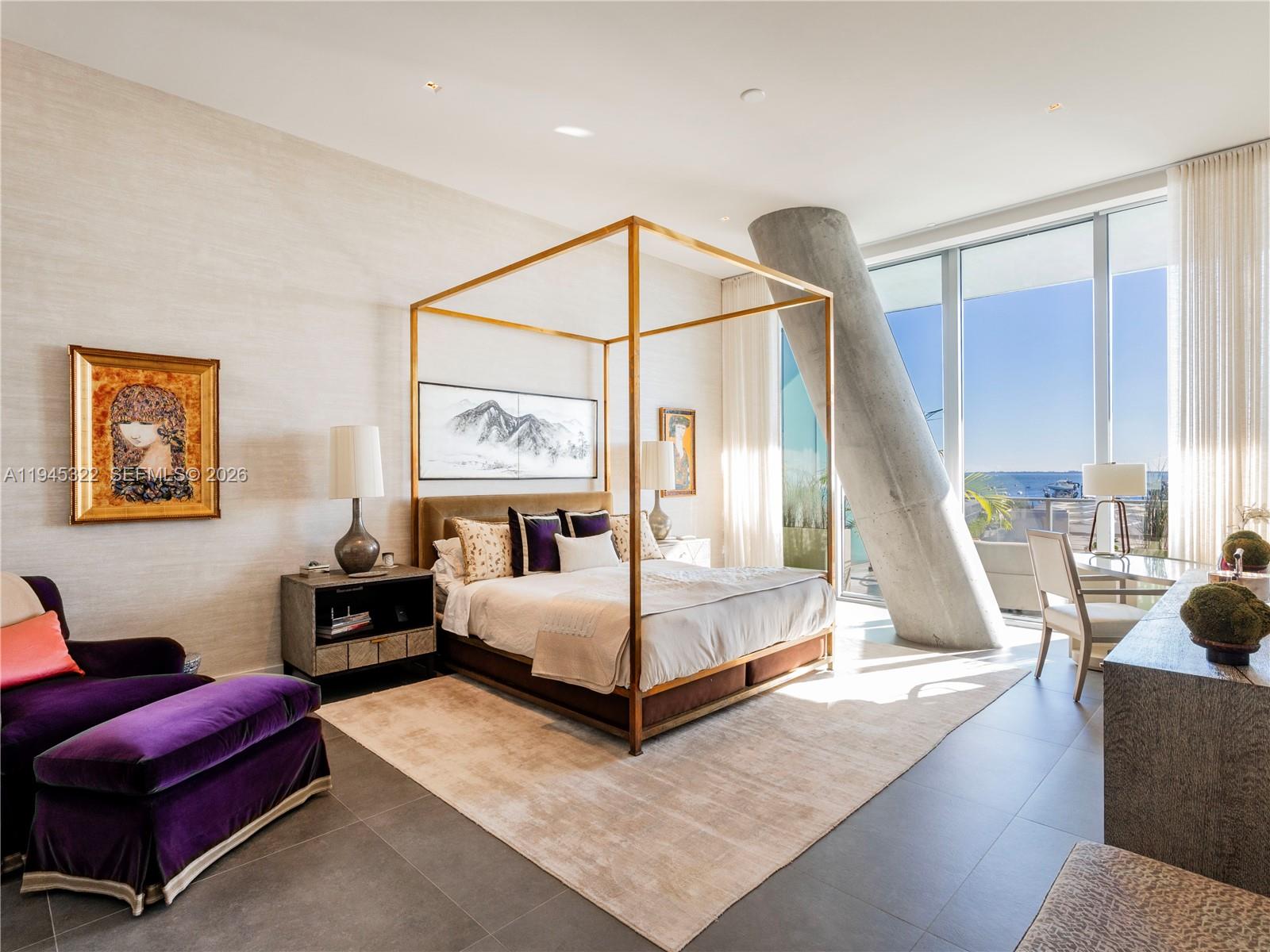 Exclusive, move-in-ready duplex masterpiece in the rarely available South Tower of the iconic Grove at Grand Bay. Spanning the sixth and seventh floors, this designer-finished, offered fully furnished split-level residence offers 3 beds, 3.5 baths, soaring 12' ceilings, and dramatic floor-to-ceiling glass framing unobstructed, south-east facing bay views. Two massive 12'-deep terraces function as outdoor living rooms. Grove at Grand Bay isn’t just a place to live—it’s a landmark that reinvented the Coconut Grove skyline. Designed by visionary architect Bjarke Ingels, this boutique building is celebrated for its striking form, white-glove service, and grand, gallery-like residences. Amenities include: a private dining room with an in-house chef, state-of-the-art gym, rooftop and ground-level pools, a world-class spa, butler service, a serene library, and 24-hour concierge. A true sanctuary of design and exclusivity.