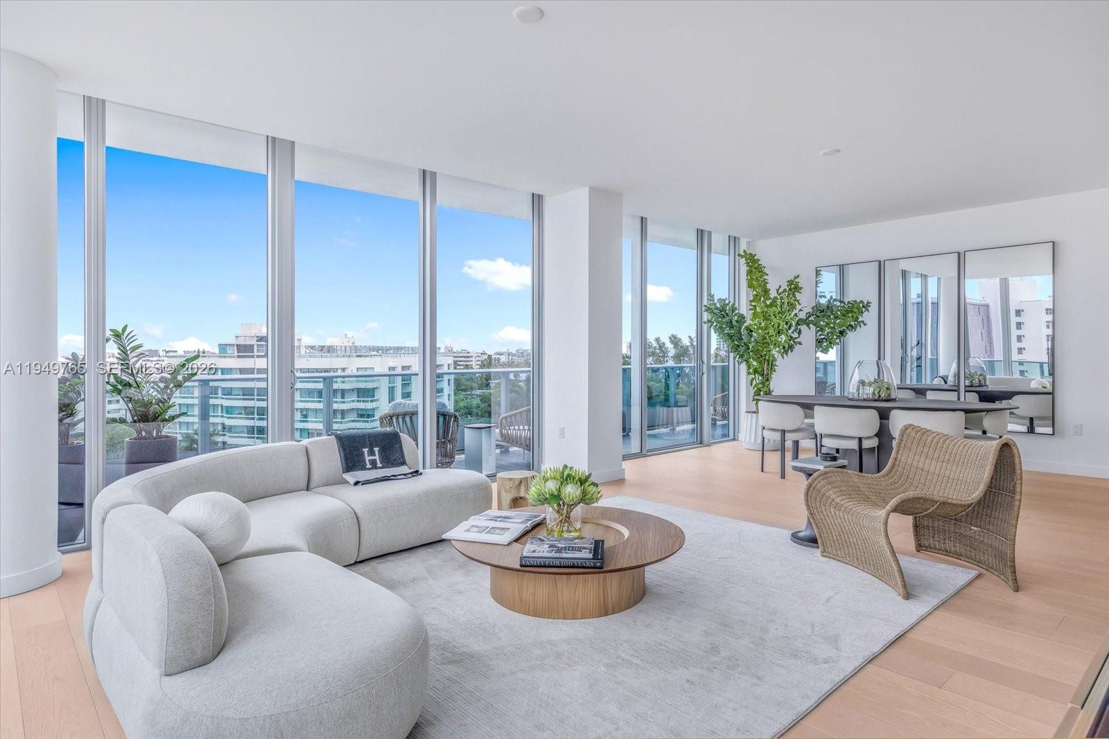 The Parkview Penthouse at La Baia South is a quiet, elevated residence where proportion, materiality, and light shape the design. Located on the eighth floor, this three-bedroom residence with den spans 2,068 interior square feet, complemented by 399 square feet of wraparound private outdoor space. Interiors feature imported European wide-plank wood flooring, ten-foot ceilings, and floor-to-ceiling, impact-resistant glass that brings in natural light and frames park-facing views with select water sight-lines from the terrace. The kitchen is thoughtfully integrated into the living space with custom European cabinetry, quartz stone countertops, a pantry, and a full Miele appliance package. Fixtures and finishes throughout the residence are curated by New York–based Durukan Design, with Hansgrohe fittings providing a refined, modern finish. Bathrooms are appointed with natural marble stone flooring, glass and chrome showers with dual rainfall showerheads, and custom European vanities. In-residence laundry includes a Miele washer and dryer, completing a residence defined by architectural clarity and carefully selected materials. La Baia is the latest project from visionary New York developer Ian Bruce Eichner who is credited with placing Miami Beach’s prestigious South of Fifth neighborhood on the map with the arrival of the Continuum South Beach. Upper Penthouse 02 comes with storage unit. Dock slips available for sale. Sold separately.