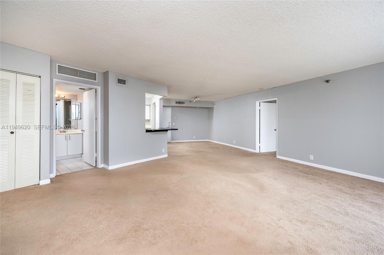 Spacious high-floor residence with open layout and breathtaking bay views, offering beautiful sunsets from a prime Aventura location. This one-bedroom, two-bath unit is in original condition with carpeted floors and an older kitchen, presenting a great opportunity to customize and add value. Features include a generous bedroom with walk-in closet and en-suite bath, washer and dryer in the unit, and bright living areas filled with natural light. Parc Central East offers 24-hour security, front desk service, and resort-style amenities including two pools, gym, fitness classes, sand volleyball, and more. Minutes to Aventura Mall, beaches, shops, and dining. Ideal for end users or investors.