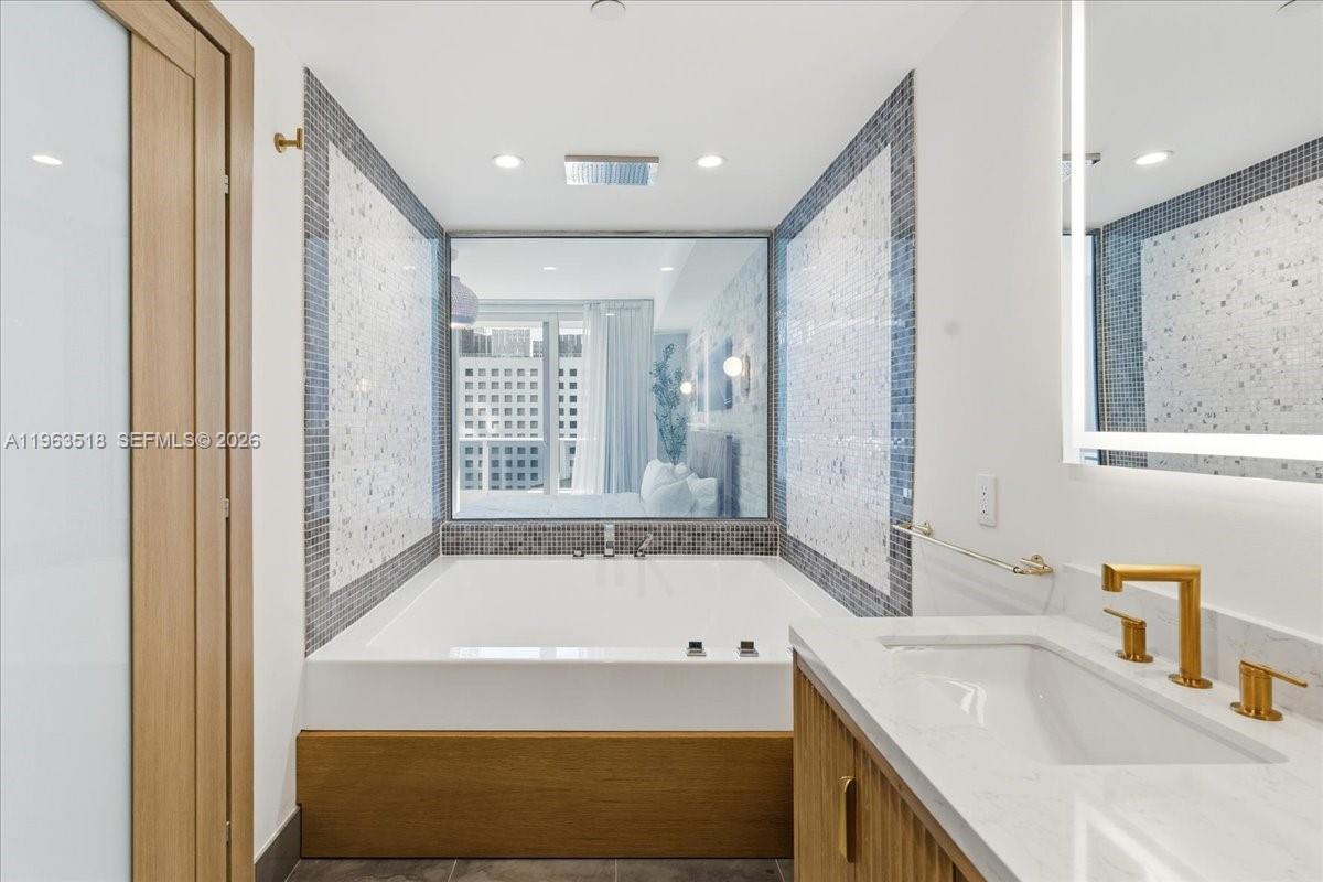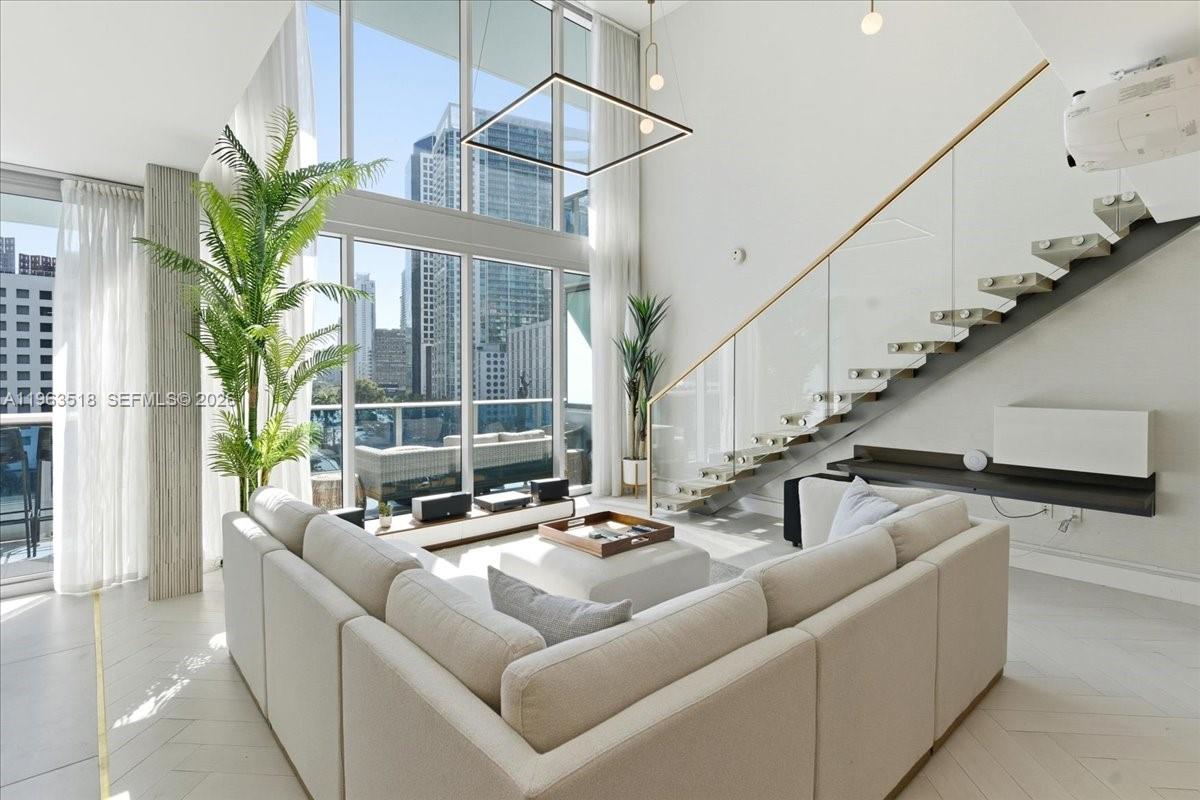 Rare opportunity to own a fully renovated, double-height loft at Epic Miami Residences. Unit 706 features a custom German Leicht kitchen with premium European finishes, dual cooking stations including a professional Bertazzoni 6-burner gas range plus induction cooktop, marble waterfall island, and full-height cabinetry. The residence offers a dramatic double-height living area, floor-to-ceiling windows, private terrace, and city views. Fully furnished with curated modern furniture and a premium entertainment setup including large projector screen. Floating staircase with integrated LED wine storage adds architectural character. Turnkey, designer-ready unit—ideal for end-users or investors seeking a standout loft in a prime Brickell/Downtown location.