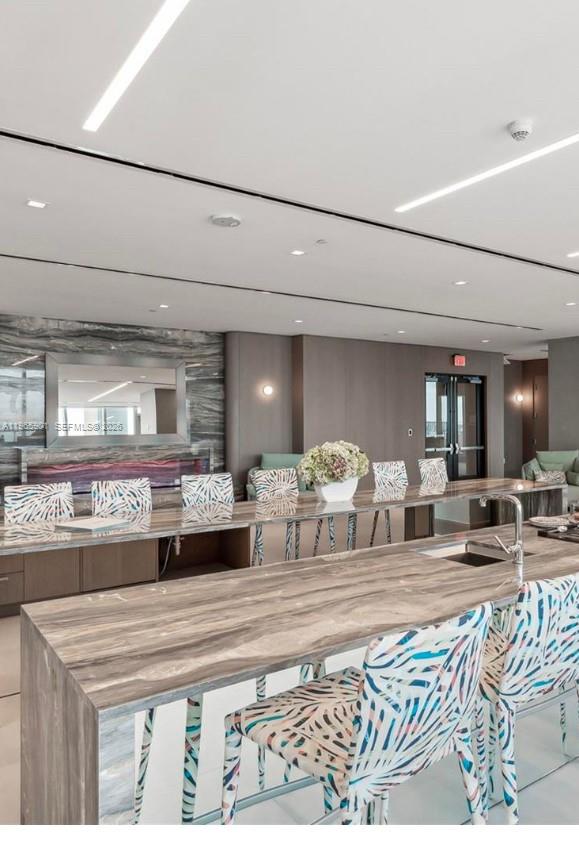 Spectacular residence on the 54th floor at Missoni Baia, presenting unparalleled luxury living with breathtaking Bay, Ocean and skyline panoramic views. This 3 bedroom 4.5 bath plus Den/Maid Quarters, corner residence is thoughtfully curated and delivered with high-end finishes, built-ins and designer wallpaper, making it truly move-in ready for the most discerning buyer. The residence features floor-to-ceiling windows with stunning water views, custom designer closets throughout, and a remarkable primary closet that resembles a luxury boutique. Each of the three ensuite bedrooms flows seamlessly with elegant finishes and abundant natural light. The chef’s kitchen is appointed with premium appliances and exquisite finishes, complementing the sophisticated living and dining spaces. This home features a custom designed walk-in bar, perfect for intimate gatherings. Every detail has been thoughtfully considered to ensure comfort, style and convenience. Missoni Baia offers resort-quality amenities curated to elevate everyday living and a world-class five-star experience. Residents enjoy an Olympic-sized lap pool, multiple resort-style pools with cabanas, an expansive spa and wellness center, state-of-the-art fitness facilities, tennis courts, private screening and game rooms, hair and nail salon, children’s club, pet spa, concierge and valet services, and multiple event spaces overlooking Biscayne Bay.