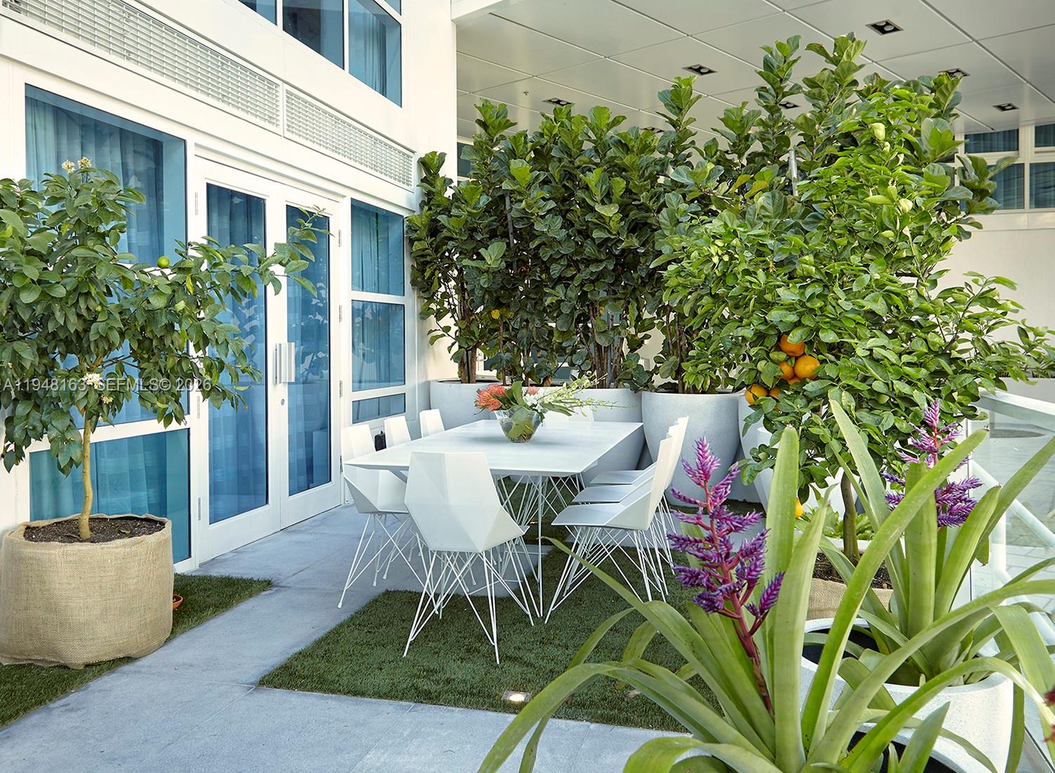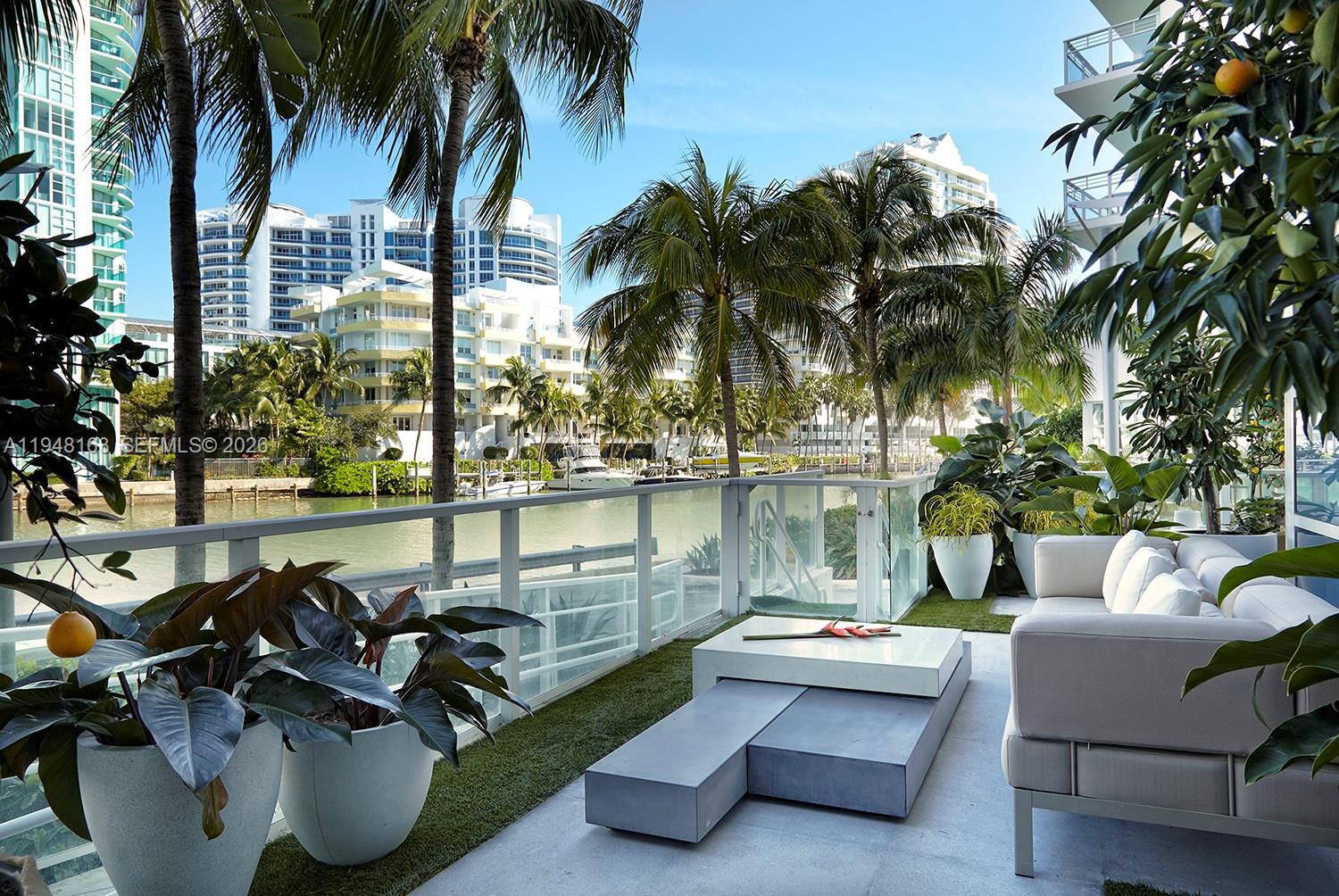 Private Island living in exclusive AQUA at Allison Island. Unique 2-story Lanai residence. This exceptional sanctuary overlooks the bay and Indian Creek Waterway, with water views from every single room. Featuring 3 bedrooms, 3.5 bathrooms and 2,338 SF of interior space, this home boasts an ideal entertaining floor plan with open living areas designed to bring the beauty of the outdoors inside. Designed by award-winning JDesign Group, the residence showcases white glass tile flooring, recessed lighting, and a new white lacquer kitchen equipped with Sub-Zero and Wolf appliances. The highlight is the enormous wraparound terrace of over 1,400 SF, finished with granite flooring, artificial grass, and lush landscaping with fruit trees, creating a true garden paradise perfect for entertaining, plus a private balcony off the primary suite. Oversized outdoor living areas offer breathtaking bay views and a serene island lifestyle. Three assigned covered parking spaces included. A true children’s paradise and a rare opportunity to live on a private island in Miami Beach