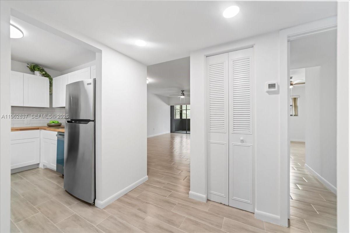 Beautifully renovated 1 bedroom, 1 bathroom condo located in the heart of Plantation with tranquil golf course views. This bright and modern unit features a brand-new kitchen with white shaker cabinetry, stainless steel appliances, subway tile backsplash, and warm butcher block countertops. The open living and dining area is filled with natural light and showcases sleek wood-look tile flooring throughout. Enjoy peaceful mornings and relaxing evenings overlooking the lush green fairways from your private balcony. The spacious bedroom offers ample closet space and natural light, while the updated bathroom features a contemporary vanity, modern fixtures, and clean finishes. Neutral tones throughout create a fresh, move-in-ready feel. Impactful upgrades and thoughtful details make this home perfect for a primary residence or seasonal retreat. Situated in a quiet, well-maintained boutique building with low HOA fees and rarely available units, this community offers a serene setting while still being close to shopping, dining, highways, and all that Plantation has to offer. Association requires 12 months of ownership prior to renting. No dogs permitted per HOA; cats are welcome. Motorcycles are not allowed. Don’t miss this opportunity to own a beautifully updated condo in a prime golf course location!