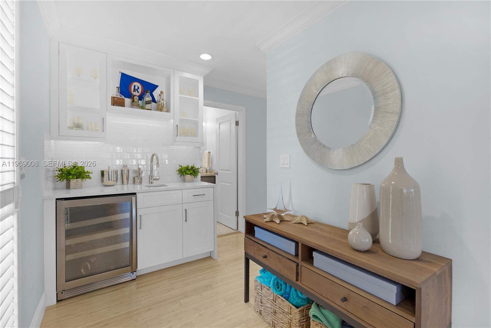 Fantastic waterfront condo in Pumpkin Cay neigborhood. This bright and spacious 2BR/2BA corner residence is filled with natural light and showcases water views from every angle. The recently remodeled kitchen features white custom cabinetry, Bosch stainless steel appliances, and a built-in refrigerator. Just off the kitchen, a dedicated bar/wine area with glass cabinetry and a wine fridge to make entertaining effortless. Additional highlights include two-zone HVAC, two on-demand water heaters, impact windows, and more. Enjoy new seawall with floating dockage for up to a 40’ boat (subject to availability) just steps away, plus a private cart storage room—ideal for your golf cart, fishing gear, and extras. Move-in ready—schedule your private showing today!
