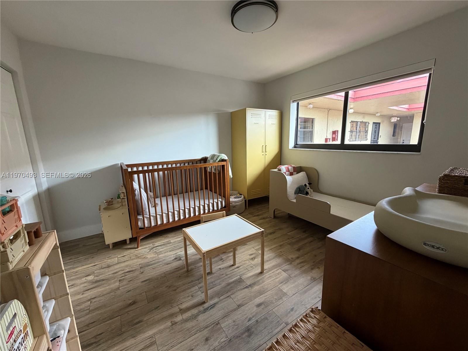 Welcome to this beautifully updated 2-bedroom, 1-bath condo offering modern finishes and effortless style throughout. The bright, open-concept living space features wide-plank wood-look flooring and a seamless flow into the renovated kitchen complete with white shaker cabinets, quartz countertops, stainless steel appliances, subway tile backsplash, and a spacious island with seating for three to four — perfect for entertaining. The living room is filled with natural light and opens to a private balcony, creating an airy indoor-outdoor feel. Both bedrooms are well-sized with generous closet space and flexibility for guests, a nursery, or a home office. The stunning bathroom showcases a frameless glass walk-in shower with sleek black fixtures, classic subway tile, patterned tile flooring, and a modern wood vanity with vessel sink. With contemporary finishes, thoughtful design, and move-in ready condition, this condo is the perfect blend of comfort and style.