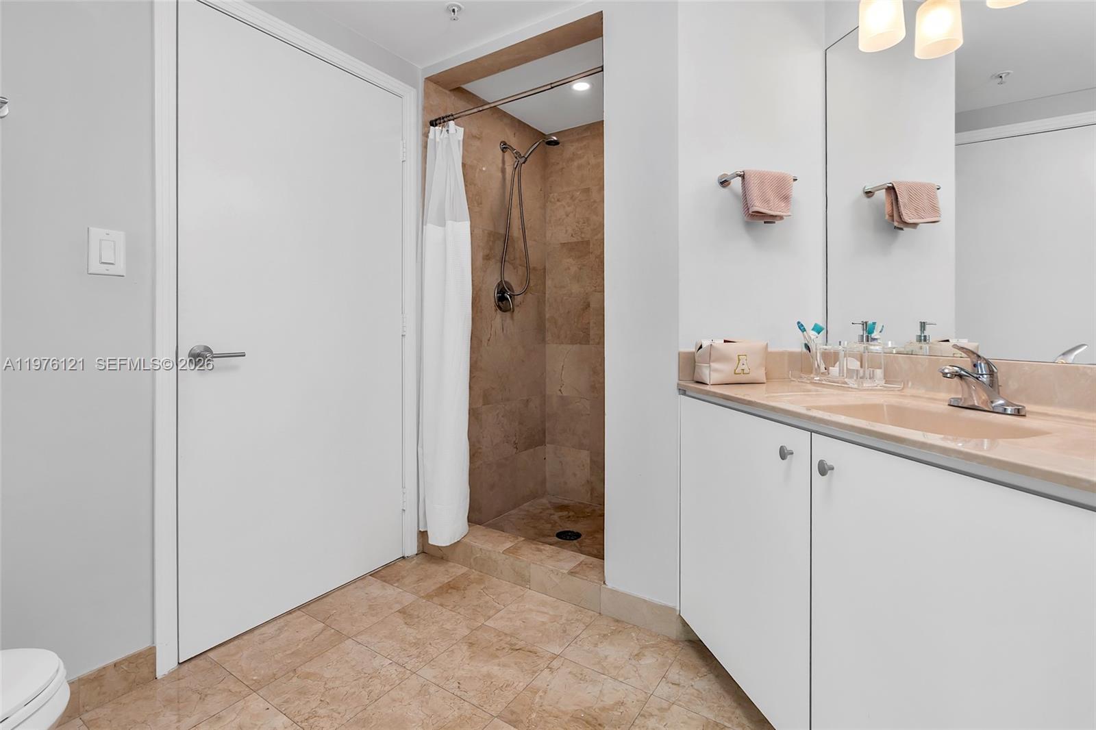 Largest Floor plan in the building! Substantially remodeled 2 bedroom, 2 bath unit plus den - easily convertible into a 3rd bedroom or private office. This spacious unit features beautiful polished marble flooring throughout the living area and bathrooms with elegant wood-look tile in bedrooms. Gorgeous unobstructed sunset views. Unit Includes one assigned parking space with option to rent a second space and a private storage unit. Building offers: 2 heated pools, jacuzzi, 2 gyms, clubroom, saunas, 24 hour concierge, 24 hour valet and 24 hour security patrol. FOB secured building. Walk to Dadeland Metro Station South, Publix, Trader Joes, Dadeland Mall and all up and coming Restaurants.
