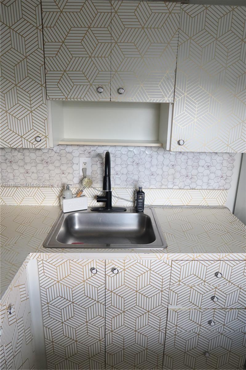 Los Suenos, Hialeah — 1 bed, 1 bath on the 3rd floor. Open living area, green accent wall, and tile floors. Kitchen has basic cabinets and appliances. Bedroom with closet. Bathroom with standard fixtures. Laundry on the 2nd floor. 1 assigned parking space in the unit. Secure entry. Close to shops, transit, and highways.