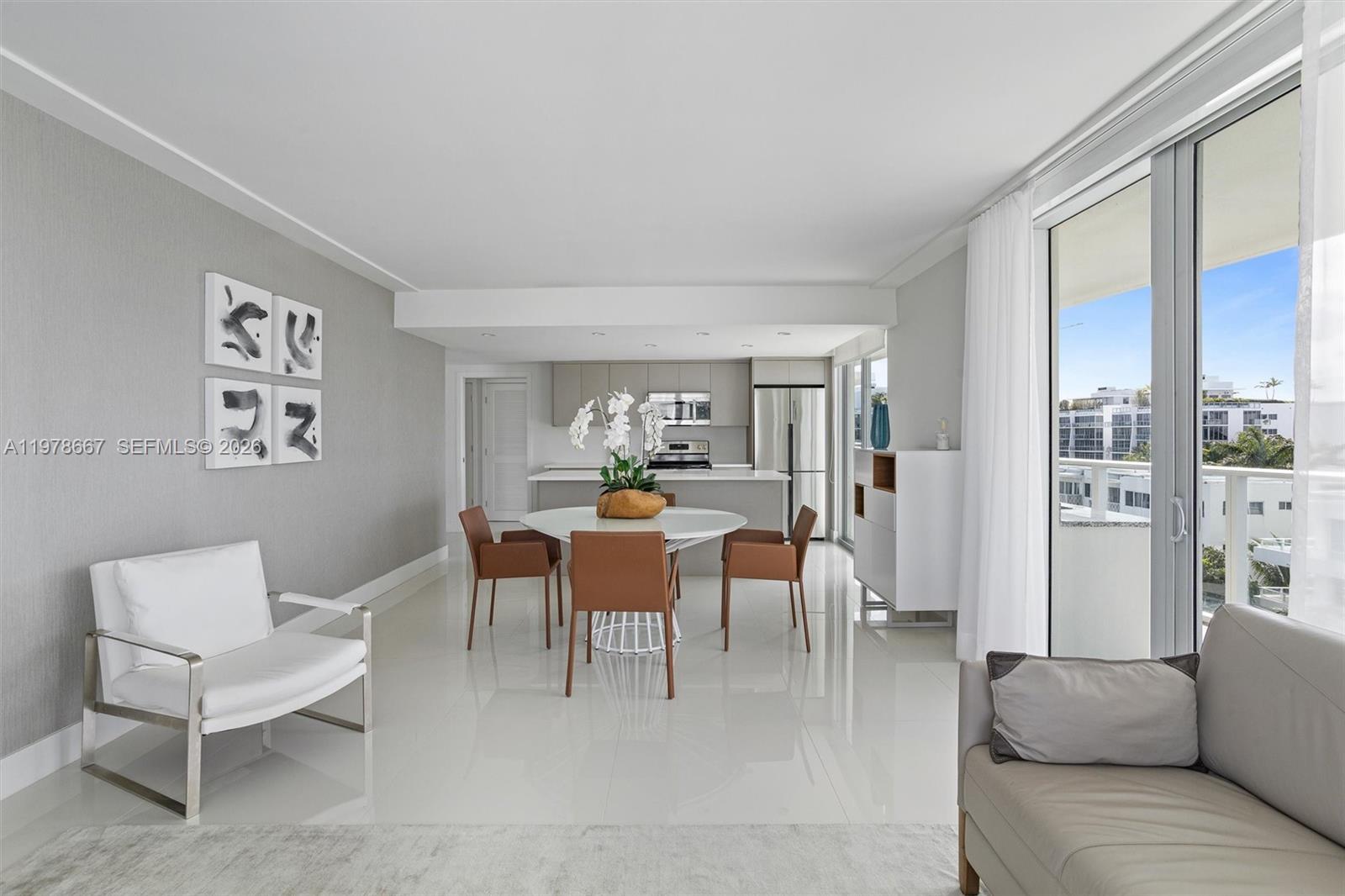 This unit features a modern design with 2 bedrooms and 2 bathrooms. A bright apartment with floor-to-ceiling windows that fill the space with natural light. The spacious balcony includes an outdoor gourmet kitchen, ideal for entertaining guests. Located on the eastern island, steps from Bal Harbour Shops, top-tier cafés, and fine restaurants, close to the beach and some of the best schools in Miami. The building offers sophisticated amenities, including a rooftop pool with panoramic views, jacuzzi, gym, ample storage areas, and two parking spaces with direct elevator access. The unit is been sold fully furnished and decorated.