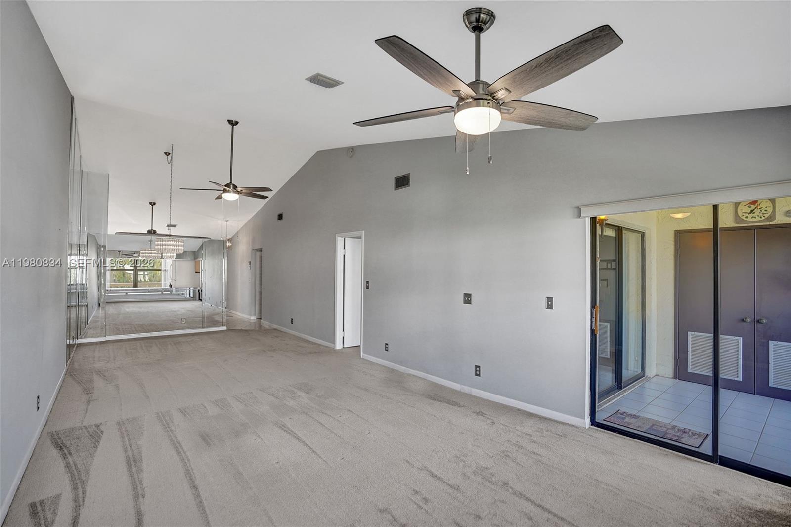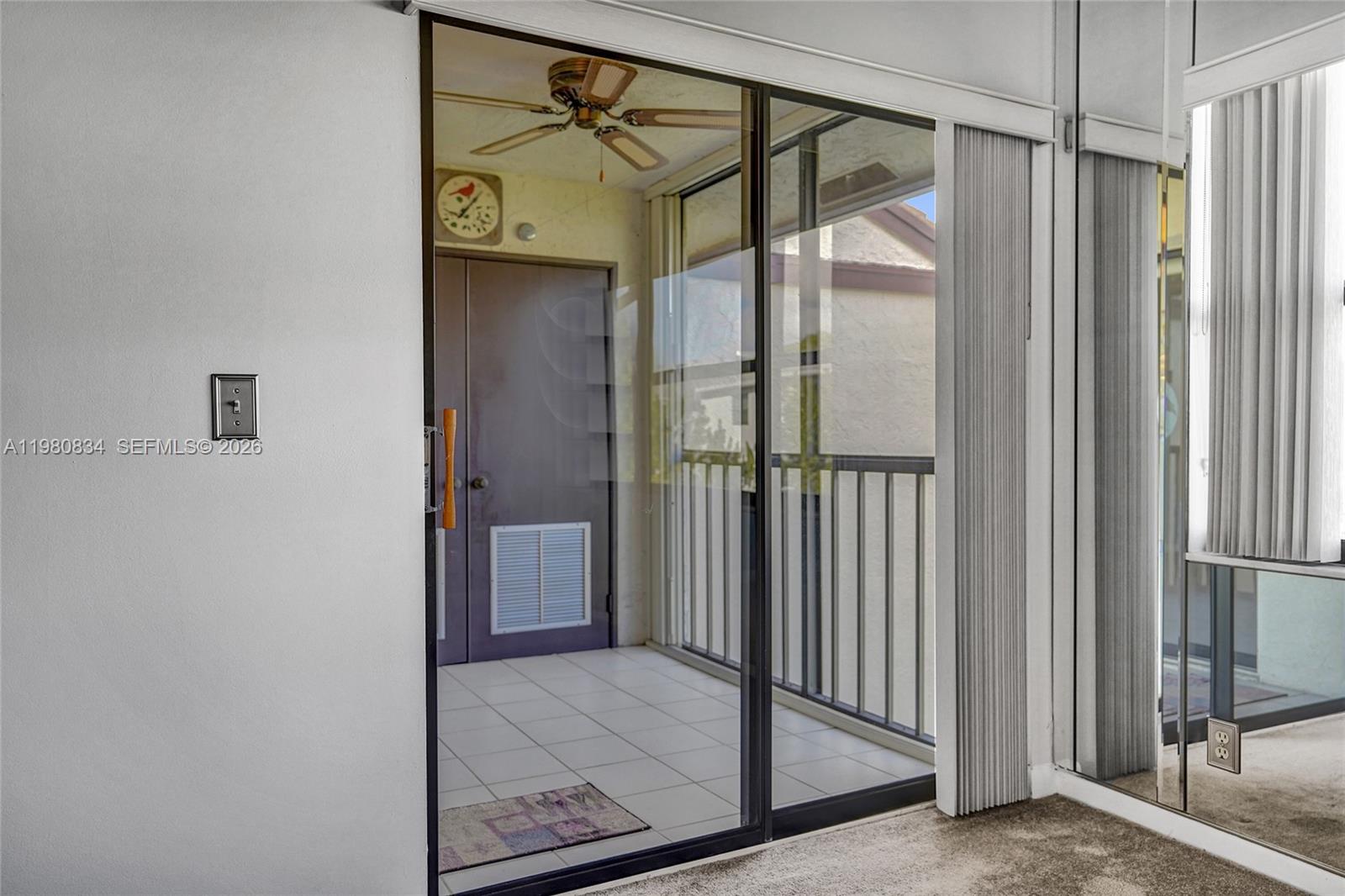 Beautifully maintained second-floor 2-bedroom, 2-bath condo ideally located within walking distance to the satellite pool. This light and bright residence features an open-concept layout with new carpeting and the popcorn ceiling removed, creating a clean and cohesive feel throughout. Freshly painted and move-in ready, the spacious primary suite offers a large walk-in closet, a separate vanity area, and a private enclosed shower. The in-unit laundry closet adds everyday convenience. Enjoy peaceful mornings or relaxing evenings on the screened and tiled balcony, which also includes a generous storage closet. Accordion shutters for the balcony and impact windows throughout the unit provide added protection and peace of mind during storm season. With a newer A/C (2019) and water heater (2021), this home offers comfort, value, and an excellent opportunity to enjoy the South Florida lifestyle.