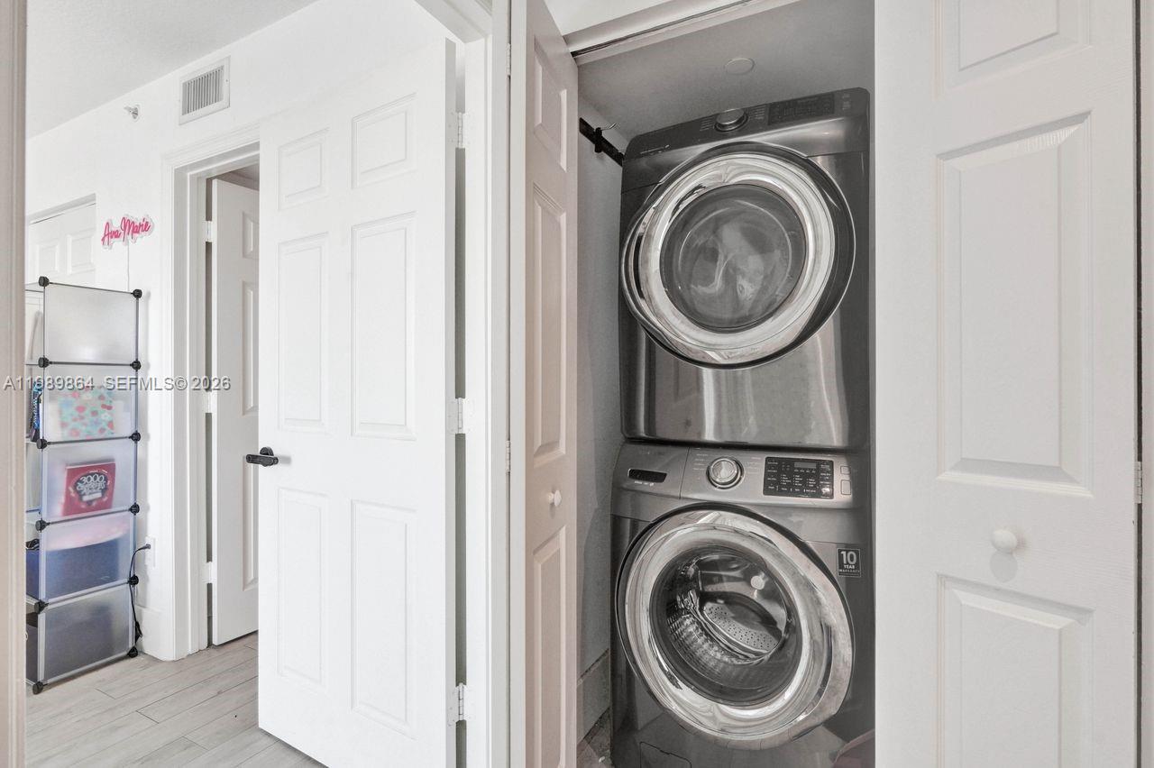 This 2-bedroom, 2-bathroom condo offers a perfect blend of modern finishes, comfort, and convenience. The home features kitchen with quartz countertops, stainless steel appliances, and wine cooler. The unit includes custom built in closets, full size washer and dryer, and elegant porcelain wood look floors throughout. Flooded with natural light, the condo showcases panoramic city views from the 2 balconies—an ideal spot to unwind. Assigned covered parking space for added convenience and plenty of visitor parking. The building offers a variety of amenities, including pool, barbecue area, fitness room, party room, front desk services, covered parking, and on site management. Located just moments from Miracle Mile, you’ll enjoy easy access to shops, supermarkets, cafés, and top restaurants. Plus, you’re only minutes away from Coconut Grove, Brickell, Key Biscayne, Downtown Miami, Miami International Airport and UM University of Miami — one of the most desirable and connected locations in Miami.