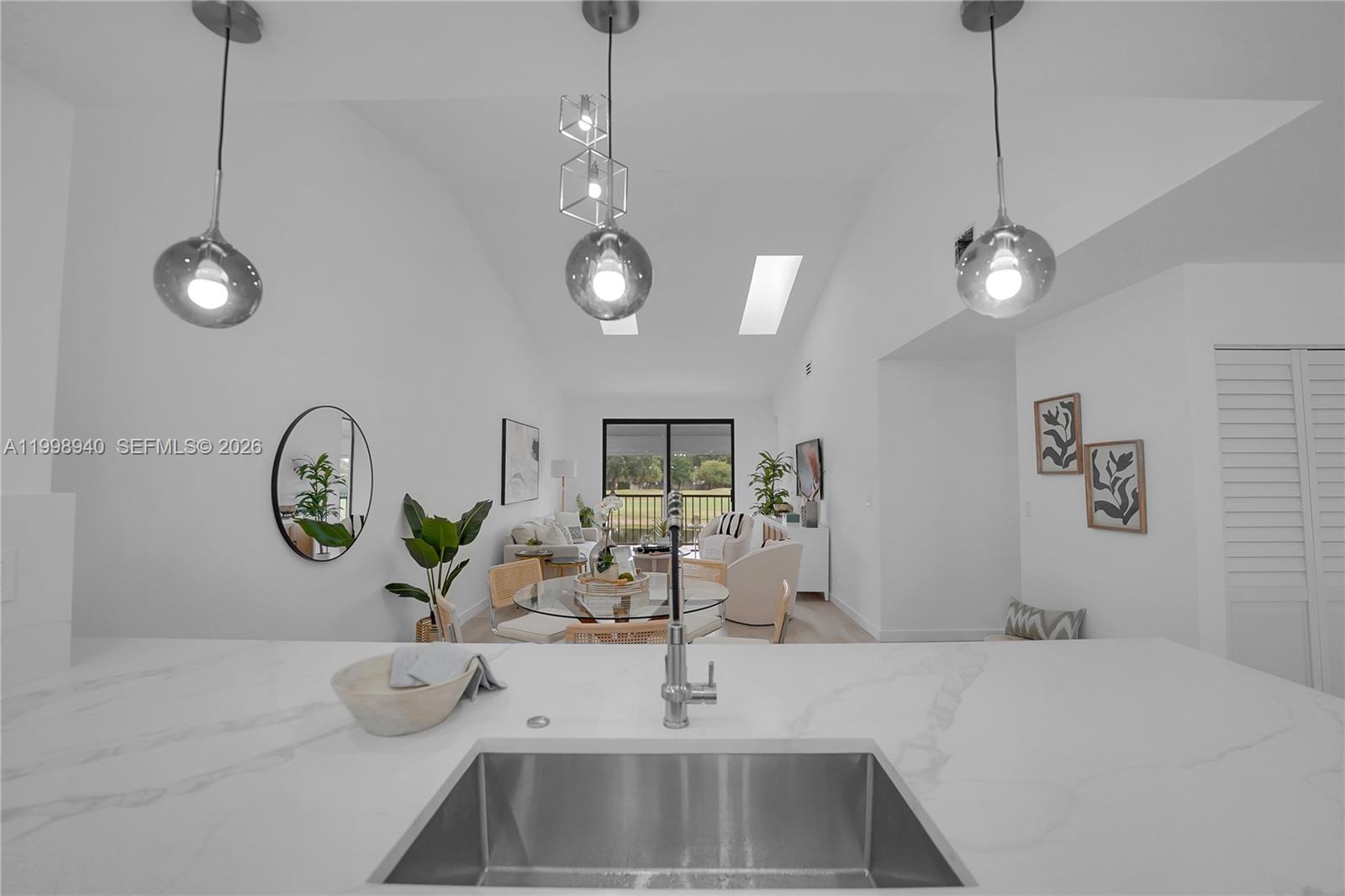 Stunning, beautifully renovated top-floor with sought-after southern exposure and unobstructed golf course views. Located in prestigious Boca Pointe, this residence offers country club living with no mandatory membership. This light-filled home features 1,600 sq. ft. of living space with vaulted ceilings and sjylights briging a lot of additional natural lights. The brand-new open kitchen showcases quartz countertops, modern cabinetry, and new stainless-steel appliances, ideal for both everyday living and entertaining. Enjoy fully updated bathrooms and new flooring throughout creating a fresh, contemporary feel. New AC & water heater. Very nice pool into the community. This exceptional home is truly a must-see—schedule your showing today!