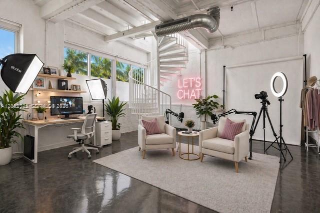Unique two-story live-work Loft at the iconic The Bank Condo, zoned for mixed use and allowing both Residential and Commercial opportunities. This renovated residence features dramatic 15-ft double-height ceilings, expansive windows, and a bold industrial aesthetic filled with natural light. The oversized layout offers a spacious open living area, while the bedroom is positioned on the lower level for a distinct and functional design. Recent upgrades include a modern kitchen featuring custom cabinetry, quartz countertops, and new Bosch appliances. The bathroom features new Duravit fixtures, a glass tub enclosure, and new tile flooring. Additional highlights include automatic blinds, newer AC, a new water heater, updated lighting, vinyl flooring, and professional acoustic insulation. Building amenities are well maintained and include a gym and jazuzzi on the rooftop with panoramic views of the city and bay. Ideally located just minutes from the Miami Design District, Midtown Miami, Wynwood, Miami Shores, and approximately 15 minutes from Miami Beach. Don't miss out on this rare opportunity!