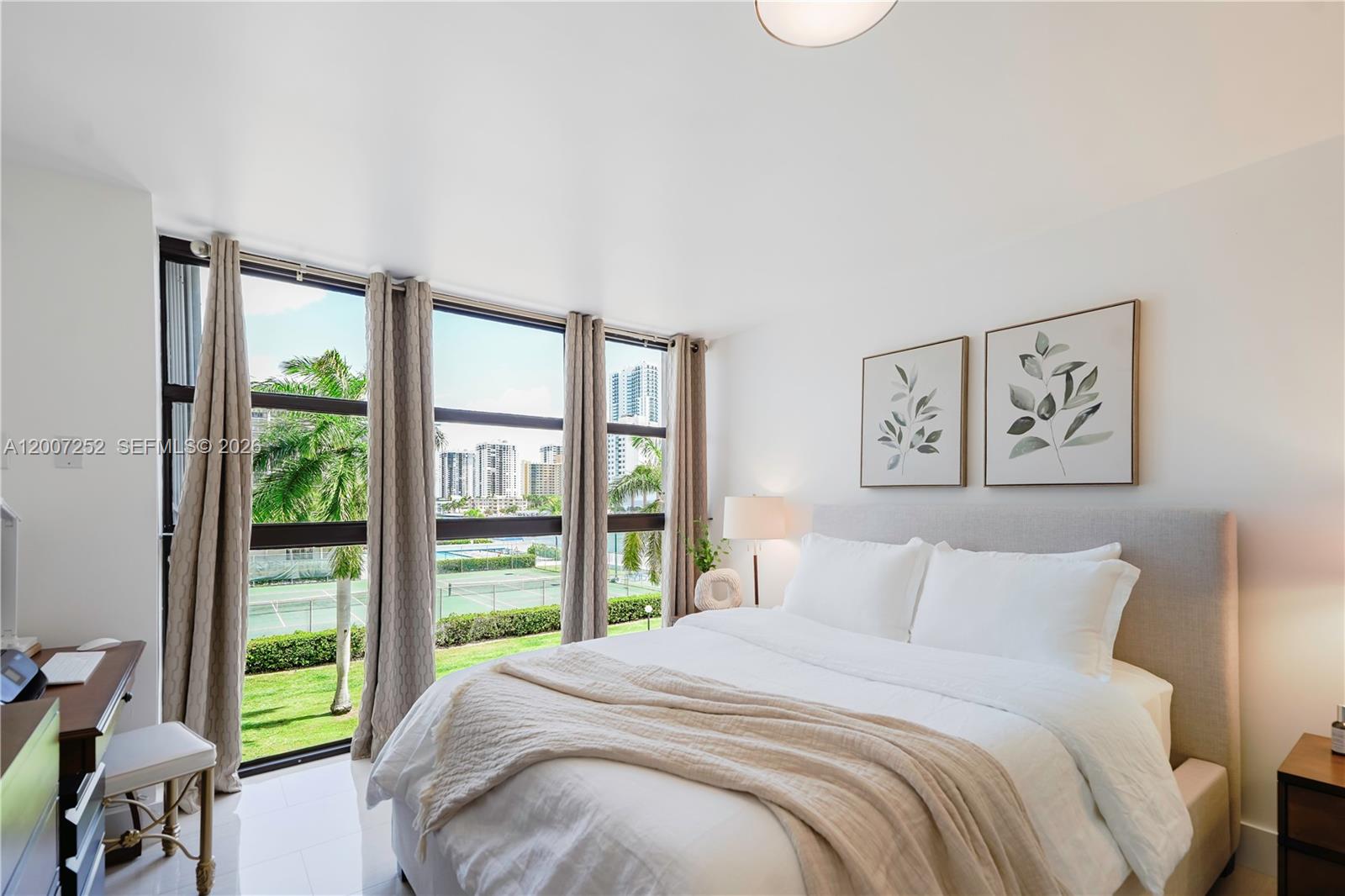 Stunning fully renovated 2BD/2BA residence showcasing refined modern design and breathtaking Intracoastal, pool, and tennis views. This turnkey home features a sleek open-concept kitchen with premium cabinetry, elegant finishes, and a clean, contemporary aesthetic enhanced by smooth ceilings throughout. Expansive floor-to-ceiling windows flood the space with natural light while capturing picturesque water views and passing yachts. Both bathrooms are beautifully redesigned with sophisticated walk-in glass showers. The second bedroom is thoughtfully designed with smart sliding walls, offering seamless flexibility as a private suite or an open den. A rare and highly desirable feature, the unit includes a washer and dryer inside. Towers of Oceanview East offers a waterfront lifestyle with a heated pool along the Intracoastal, BBQ area, tennis court, fitness center with sauna, library, party room, and bike storage—designed for both relaxation and active living.