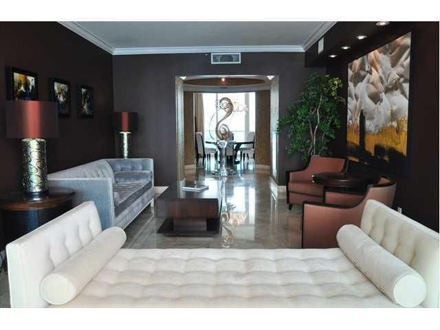 Private elevator opens into your own palace in the sky. Designed by award winning designer, Martin Martinez. 3 bedrooms (one now a den) plus a library, 2 large private balconies and awesome views of ocean and bay from every room. Designer furniture,modern kitchen designed by Mia Cuccina w/ Miele appliances. Portofino Tower is a 5 star complex w/ a 29th floor spa, 2 pools, 2 tennis courts, concierge, 24hr valet & front desk services and the highest condo health index in the area at 90 by condo reports.