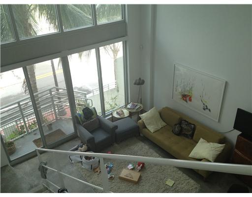 Modern spacious two-story loft w/private entrance & garden and 2 parking spaces in sought-after south of fifth street building w/pool! Custom-designed kitchen w/unique high end fixtures: from Fisher Paykell refrigerator to Bosch white ceramic cooktop & wi ne cooler- every detail has been attended to. Stained concrete flooring, 20 ft floor to ceiling impact glass windows w/electric blinds, custom railing leading to large master suite on 2nd floor w/2 walk-in closets, Bosch washer/dryer & more. Pet friendly.