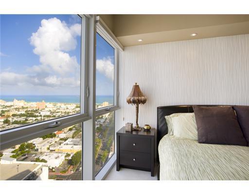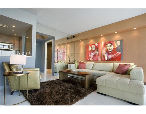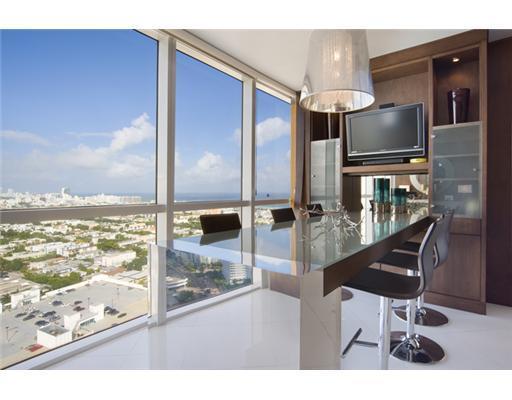 Icon South Beach-high floor. 1/1.5 apartment with panoramic views of Ocean, Bay and South Beach. Completely remodeled and upgraded with white porcelain floors, custom wood built-ins throughout the living room and finest mosaic in the bathroom. Stainless s teel appliances, custom made closets. High end amenities include 2 pools, restaurant, spa and gym. Furniture negotiable.