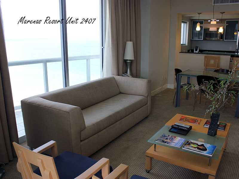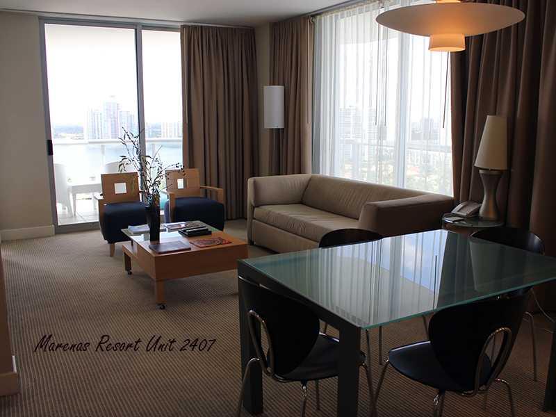 Beautiful condo/ hotel 24th floor unit with expansive ocean, intracoastal and city views. Direct oceanfront building located in beautiful and prestigous Sunny Isles Beach. Furnished, turn-key unit with a great split bedroom floor plan. Perfect building fo r the an owner who would like stress free rental income when they are not personally using the condo. Marenas is meticulously kept with great amenities including beach services, restaurant and spa. Own a piece of luxurious Sunny Isles Beach today!