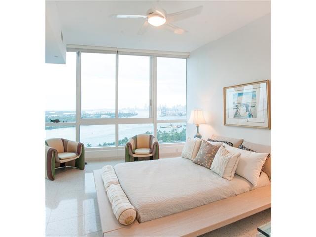 Enjoy the sunny SW downtown views & watch the boats go by in this high floor custom, private entrance foyer. Euro kit w/Miele appliances, custom built-in, w/tv, electric blinds, custom closets & terrazzo floors. Panaramic views of Goverment Cut, Fisher Is land & Downtown Skyline. Impeccable lifestyle, offering 12 acres of luxury amenities, full service concierge, 24 hr sec. & valet, 2 heated lagoon pools, 3 clay tennis courts, restaurant, world class spa/gym, beach attendents