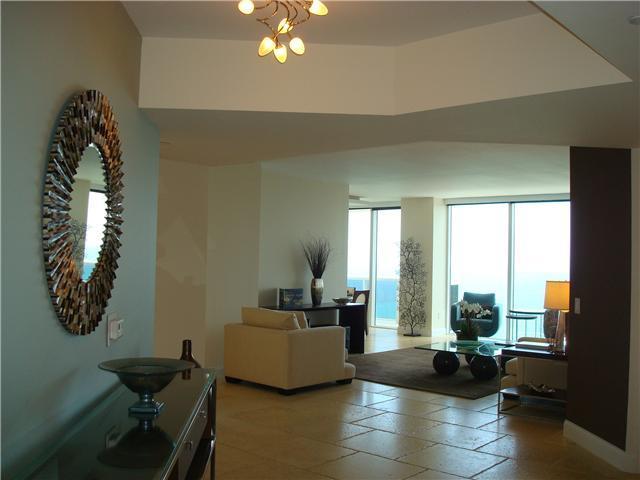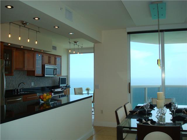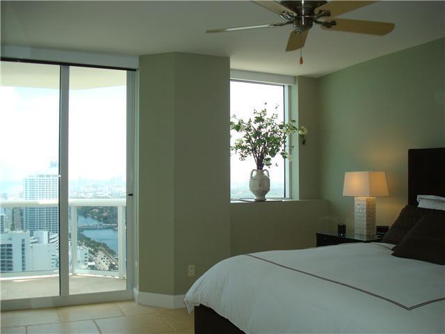 Rarely available "best line" in the Diamonds. 180 degree view, ocean to Downtown. Open renovated kitchen, stone floor. 2 Assigned tandem parking spots + valet. Docks for rent. Huge spa/gym, massage, 4 jacuzzi's,tennis,4 children's playrooms & playground, mini-golf, beach attendants, towel/lounge service. Café/market delivers. Financially stable, full reserves,low monthly maintenance, $1155 per month = $0.58 per sq.ft. Doggie park. Guard gate/valets/concierge/security 24/7. 20 minutes to MIA airport, SOBE.