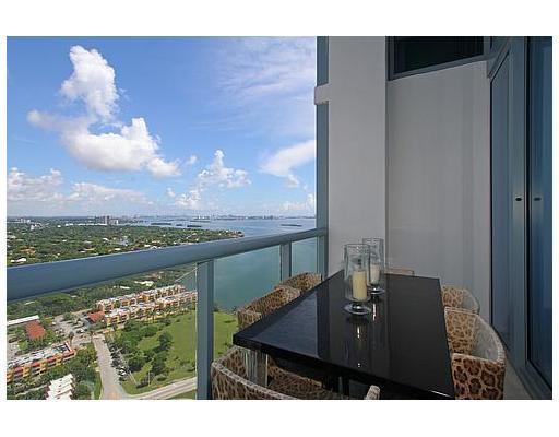 Breathtaking views of Miami Bay and Miami Skyline, from every room in this amazing two story corner penthouse that features floor to ceiling high impact glass walls (up to 22 feet in height); 3/3.5. Former famous clothing designer's unit. Custom furniture . Comes completely furnished and finished.