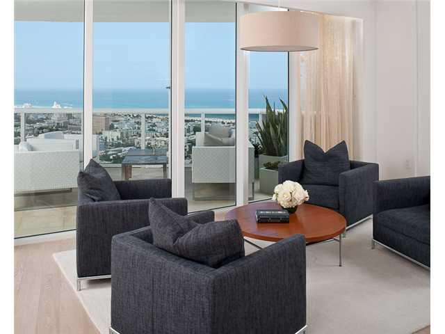 Immaculately renovated flow through penthouse offers nearly 360 degree panoramic views of the ocean, bay, South Beach, Fisher Island and Miami skyline from 2 oversized private terraces. Designer finishes include imported Italian hand crafted oak flooring, Blue Macauba quartzite island, custom teak cabinetry, and custom Bergamo fabrics. This 3 bedroom masterpiece boasts a private elevator foyer and gourmet kitchen. Complete with state of the art Creston for audio, video and solar shade control.