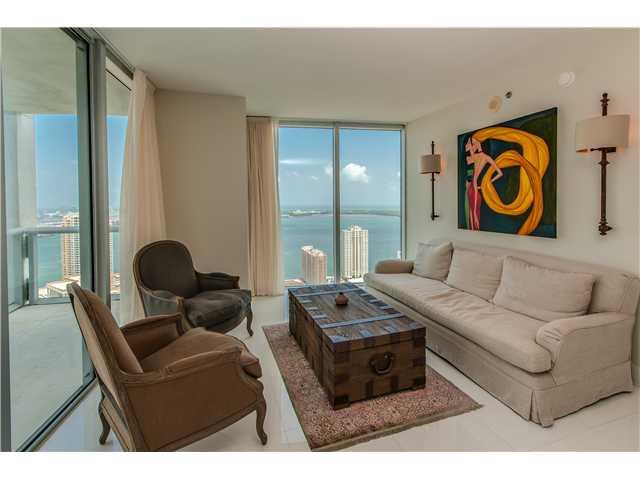 Spectacular 44th Floor "D" Line -- largest at Icon and most prestigious! Unit features stunning city and bay views. 24 x 24 white glass floors. Custom drapes, built out custom closets. Upgraded light fixtures, fans in bedrooms. This is the best of the be st! Unit sold furnished w/exceptions. Call Listing Agent to Show! See Unbranded Virtual Tour Link below.
