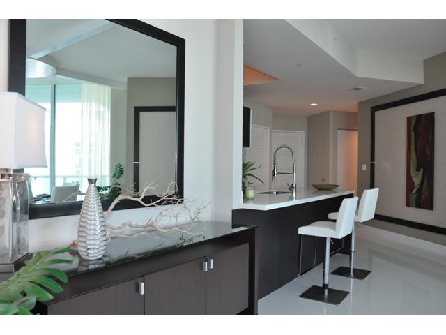 Stunning 3/2 plus guest bath, finished unit in the newest tower, 05 line,Tower Suite residence, at a great price...great ocean, intracoastal and city views!! 24x24 white marble glass. Professionally decorated!! wall paper, full backsplash in kitchen, win dow treatments,great building across the beach, low maintenance!boutiques,coffeshop and the construction of a new City Park soon. Unit in Mint!! condition, pleasure and easy to show!unit and views pictures were taken from this specific unit, real views!