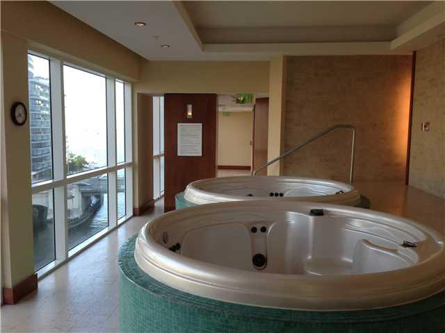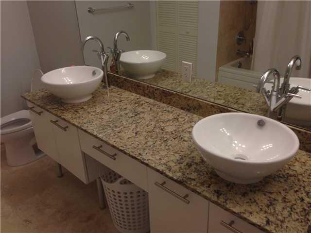 Fantastic view from this high floor! Largest unit of the 1 bedroom lines in the building. Italian porcelain floors, high end European kitchen & bathrooms which include s/s appliances, upgraded faucets, granite countertops, & Vitabath jet tub. Professiona lly installed in wall wiring for HDTV in living area, top of the line blackout shades & Medeco front door lock, make this impeccable waterfront condo move in ready. This building offers great amenities:State of the art gym, infinity pool, walk to Brickell