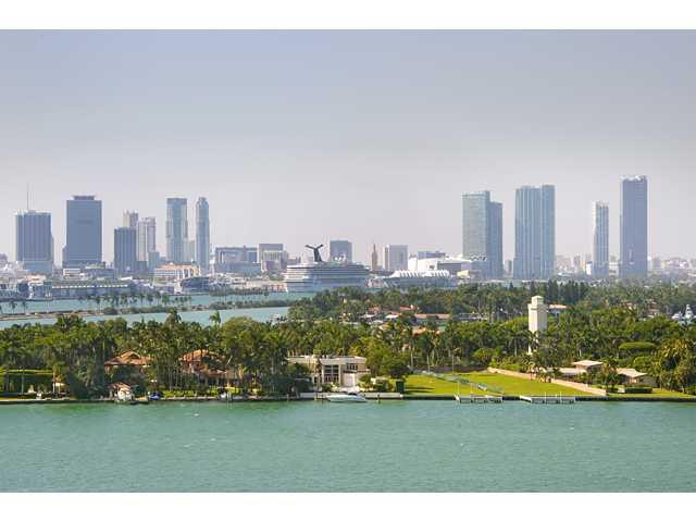 Incredible Turnkey furnished corner unit directly on the Bay with Bay, City and Ocean views from every room. Top of the line Miele and Dacor appliances,stone countertops, recessed lighting,electric window shades, front loading w/d, marble flooring thro ughout including on the wrap around terrace. Full service boutique building with 4 units per floor, pool,gym,sauna, 24 hour concierge and valet. rare 2 parking.. FLoor to ceiling windows with Sunrise and Sunset Views..