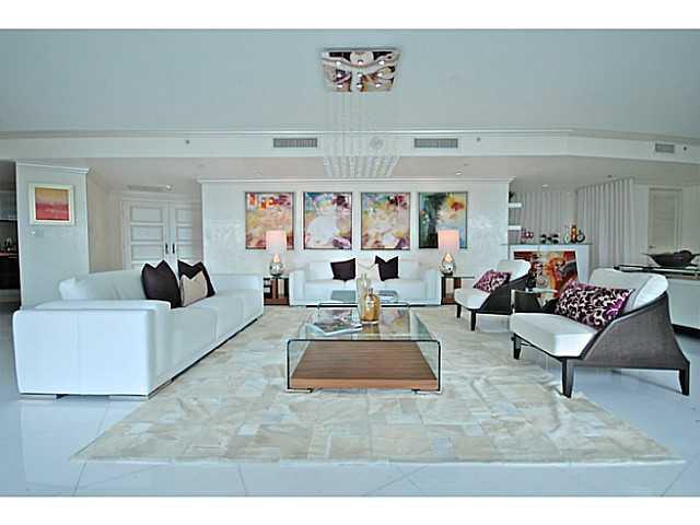 The Jewel of St Tropez, Venetian Plaster, Furnished by ArteCity Design, facing South East towards Intracoastal this 3,813 square foot space has a uniquely spacious living area, full length hurricane impact patio sliders opening along the unit, built in sp acious closets, top end finishes. This is a model unit and price includes all finishes and furniture. Low maintenance fee includes Turnberry Beach Club membership.