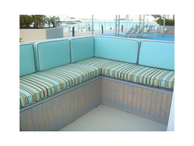 This 2/2 beach pad was designer done w/ comfort & luxury in mind. Light bleach wd flrs set the tone for the sand, sky/water color theme. Living area has amazing direct bay view. Sliding glass drs open to your patio area w/ it's built in seating & customi zed cushions. Just steps from the pool & hot tub area but tuck away & private. Separate dining area. Kit fully equipped. Master bedroom has ample space with walk in closet. Building has valet parking, fantastic gym. Allows renting and pets.